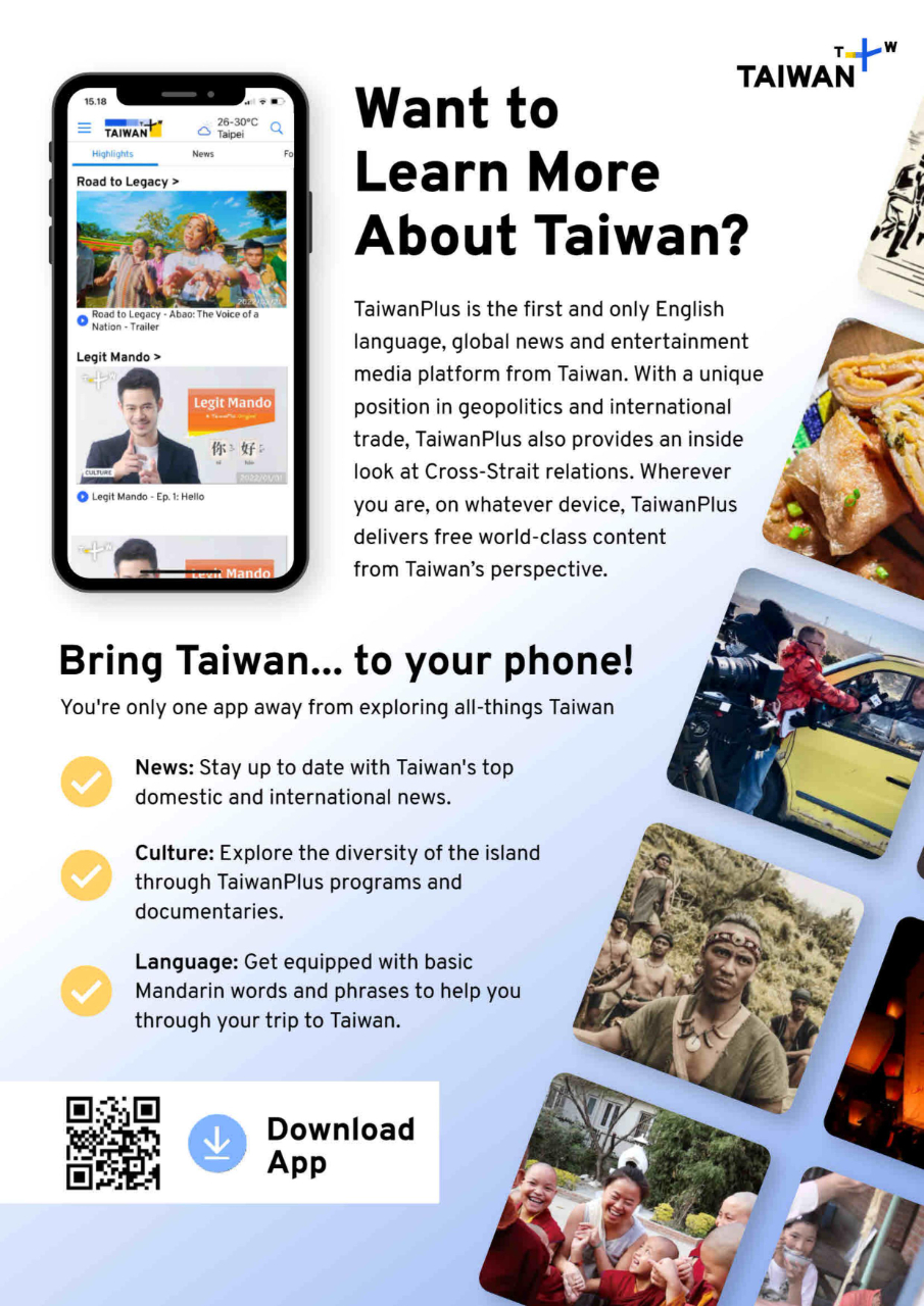 TaiwanPlus is the first and only English language, global news and entertainment media platform from Taiwan. With a unique position in geopolitics and international trade, TaiwanPlus also provides an inside look at Cross-Strait relations, Taiwan’s culture, food, travel and music.