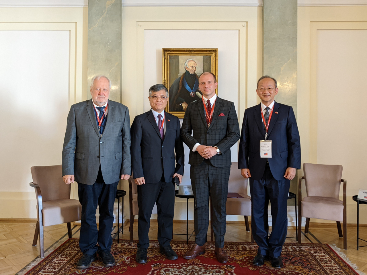 「臺灣波蘭高教論壇」邀請我駐波蘭代表處代表陳龍錦大使、波蘭駐臺辦事處高則叡 (Cyryl Kozaczewski) 處長、波蘭科學院院長杜森斯基(Prof. Jerzy Duszyński)及波蘭國家學術交流總署署長科斯特斯基(Dr. Dawid Kostecki)等出席致詞。