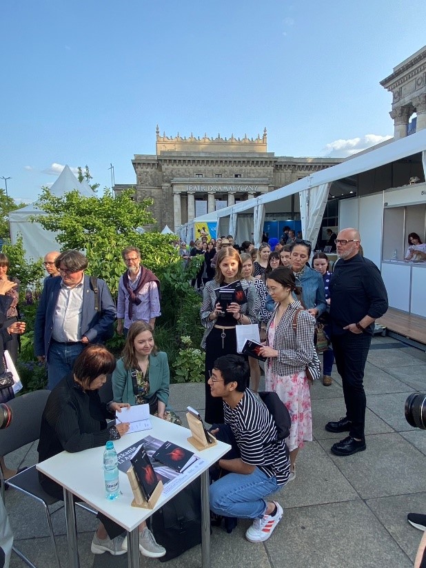 訪問波蘭期間,李昂特地前往奧斯維辛集中營親身感受人類最黑暗的一段歷史,她表示,集中營給她的震撼將展現在她未來的文學創作中。此行她也應國家出版社邀請在華沙國際書展進行簽書會和讀者見面會,李昂不僅與讀者們分享她的創作歷程和作品熱議焦點,也透露其觀察當今人類社會轉型和台灣政治局勢的險峻趨勢。其演講場場爆滿,深獲波蘭讀者所喜愛。