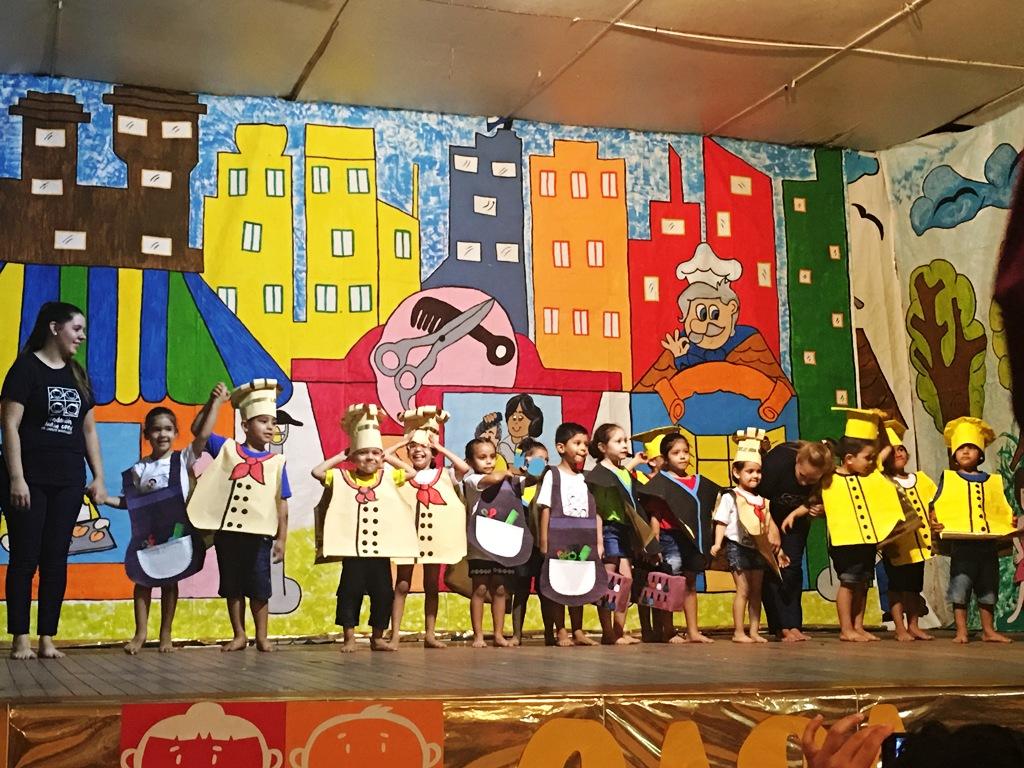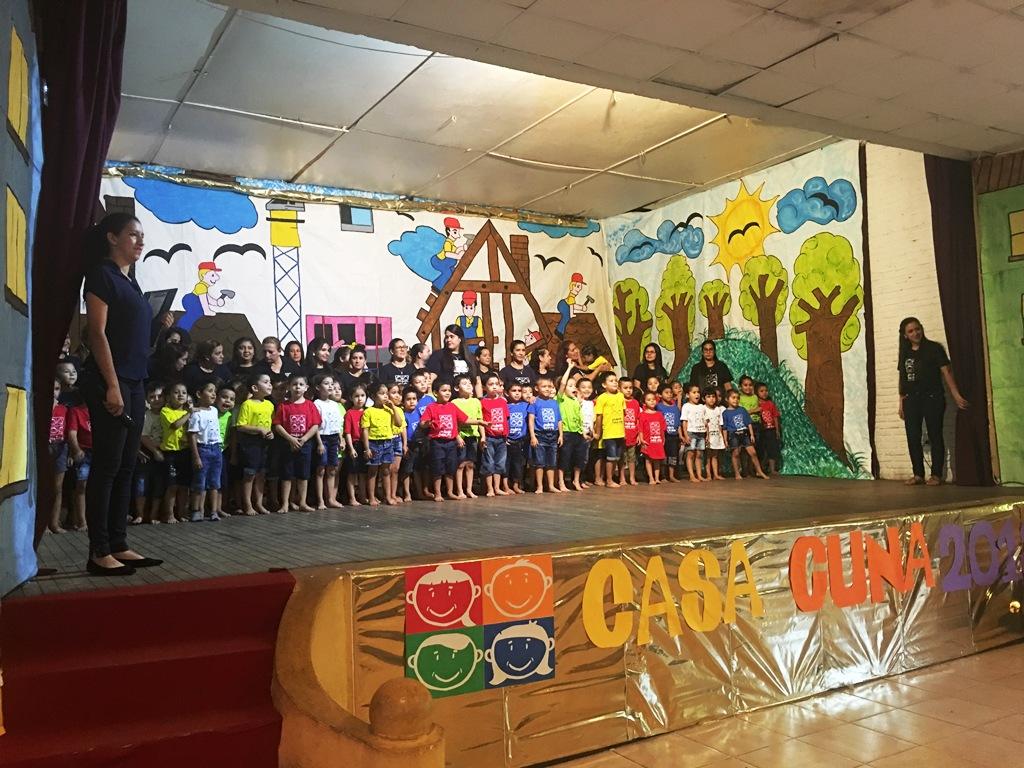 「搖籃之家」70多名畢業院童在老師的陪同下,穿著以回收資源自製的服裝及道具,搭配老師們手繪的背景,表演戲劇及舞蹈。院童們個個充滿笑容,顯然相當健康快樂,舉手投足間表現出愛與自信,令人充分感受到「搖籃之家」照顧院童成長的用心與付出,也使駐館集合巴拉圭與中南美洲台灣僑民及台灣友人的愛心,來幫助「搖籃之家」400名院童一年份食品及衛生用品的計畫,顯得格外有意義。