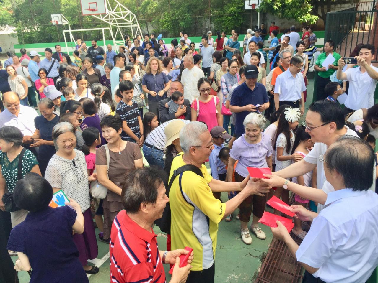 4.周大使夫婦發紅包給年長僑胞及幼童