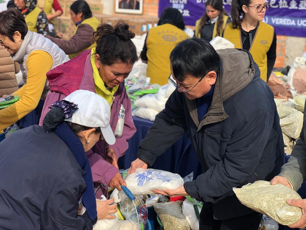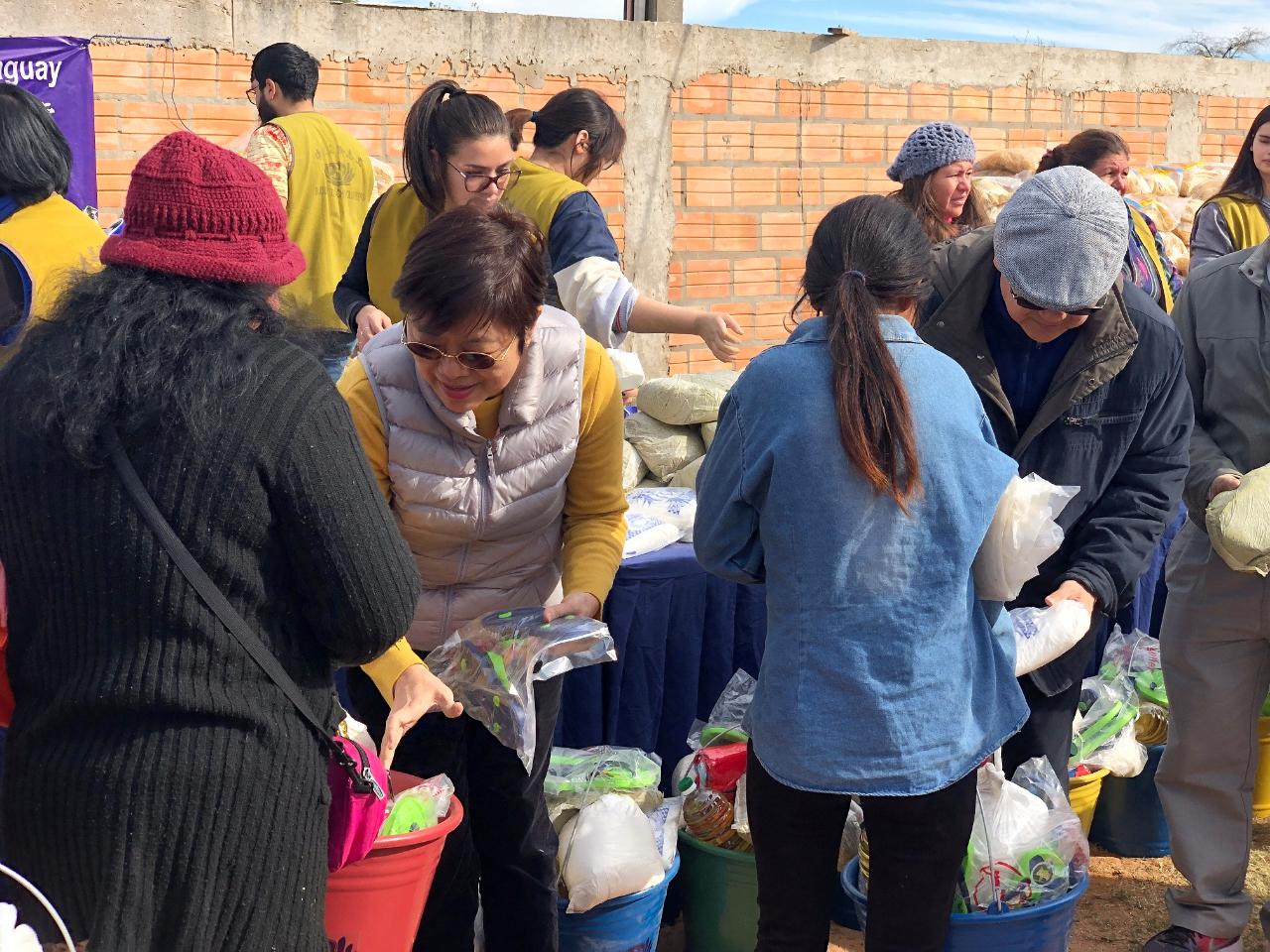 1. 周麟大使(右)參與亞松森慈濟冬令發放,為災民分送物資。