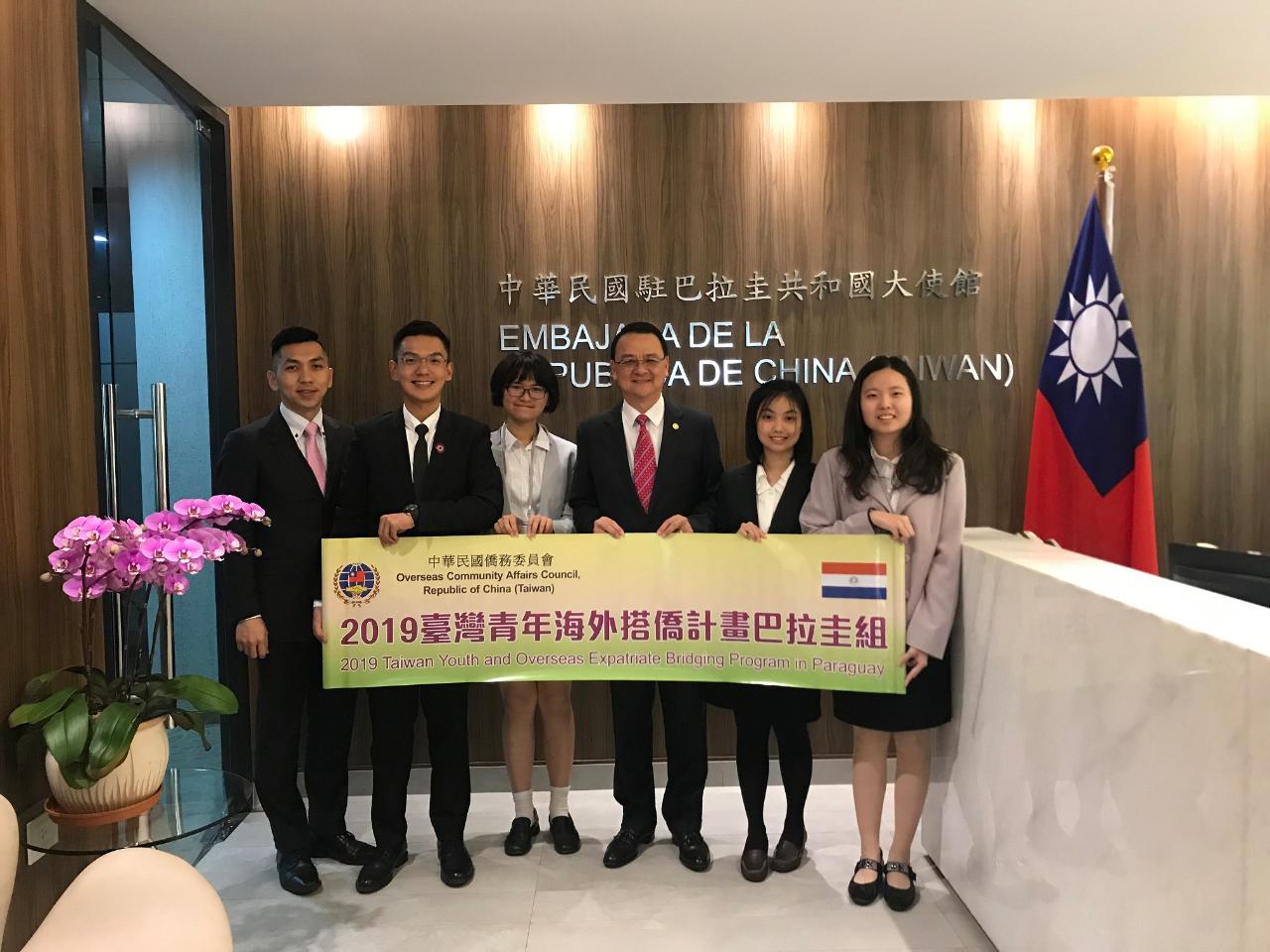 僑務委員會選送的4名台灣優秀青年:江佳紘、王昱雯、郭珈妤與彭玥慈於7月20日至28日訪問友邦巴拉圭,期間寄宿於僑胞家中,曾分別前往僑團會所、僑校及駐巴拉圭大使館拜會,瞭解海外僑民生活及駐外工作內容,在大使館安排下,學員們也獲得機會前往巴國國會、第一夫人辦公室以及財團法人國際合作發展基金會執行的合作計畫駐地參觀,這趟豐富的旅程,不僅讓學員們親身體驗在海外生活與工作的樣貌,也更加認識友邦國情與文化。 駐巴拉圭周麟大使於7月22日午間邀集搭僑計畫巴拉圭組4名學員餐敘交流,併邀大使館年輕官員作陪,與學員們分享駐外工作經驗;學員們也輪番自我介紹,述說對於初次來訪巴拉圭的感想。學員江佳紘表示,非常幸運能有機會造訪離臺灣航程最遠的國家,到訪之前對於巴拉圭的一切都很陌生,因此格外期待,感謝僑胞熱情的接待,也感謝僑委會提供此計畫讓他有機會能開拓視野。周大使勉勵學員們把握在巴國的參訪機會,多多向成功的僑領企業家們請益,也可多與駐外官員及技術人員聊聊,並提醒學員們注意安全與保健,餐敘結束後,周大使與駐館同仁帶領學員們參觀大使館辦公室,介紹各項業務。 學員們7月24日上午先後前往國合會蘭花商業生產輔導計畫與鴨嘴魚苗繁養殖計畫,分別由計畫技師彭正光與劉恆信為學員導覽介紹。彭技師帶領學員們參觀各類溫室,如何透過技術指導與產銷規劃,協助巴拉圭花農花商發展蘭花事業,改善蘭苗品質、拓增銷量與通路;劉技師首先介紹「淡水白鯧魚苗繁養殖計畫」執行成果,接著解說鴨嘴魚計畫執行現況與面臨的挑戰,隨後劉技師與助理技師韓尚融帶領學員前往養殖池塘參觀,並安排學員進入養殖池餵養、捕捉與觀察,體驗水產養殖工作內容。對於專家們能夠逐步馴服野性十足的鴨嘴魚,在養殖池內豢養與繁殖,學員們大嘆佩服。 從抵達第一天的巴拉圭足球賽搖滾區體驗,一直到搭機離巴國前仍把握時間前往舊城區拍照留下片刻永恆,搭僑計畫巴拉圭組4名學員充分體驗到巴拉圭的各種不同樣貌,也認識到僑民在當地生活的酸甜苦辣。學員郭珈妤表示,在返抵國門的那一刻,竟然開始想念巴拉圭了,這一個禮拜的經歷,將會永遠留在他們心中,化作未來在課業、工作與生活上的養分。4位學員在巴期間,每天都在個人臉書上分享所見所聞,欲知更多詳情,請於臉書(Facebook)搜尋「臺灣青年海外搭僑」或「OCACBridge」