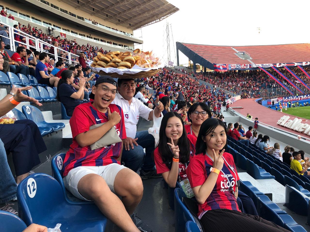照片四:搭僑計畫巴拉圭組4名學員前往觀看球賽,體驗巴拉圭的足球熱。