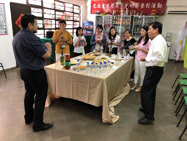 照片三:僑務委員曹水勝(右1)在中正僑校準備了各式巴拉圭道地茶點歡迎學員們到訪。
