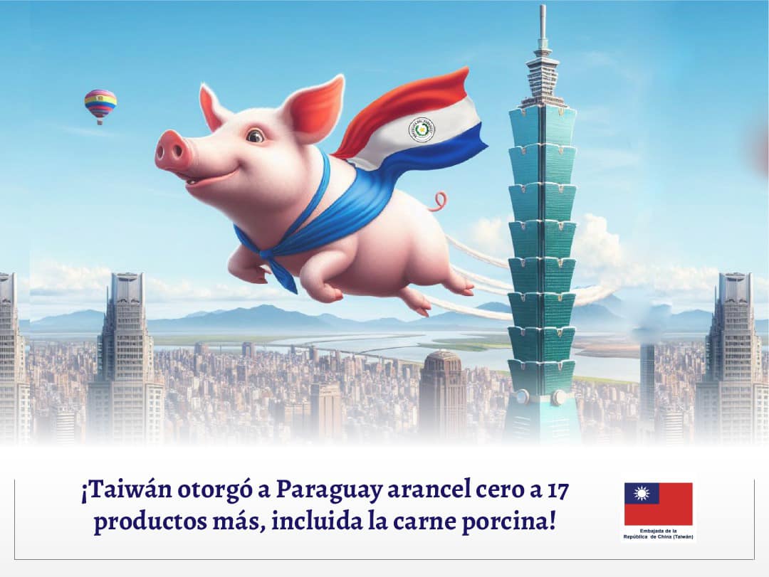 去(2023)年巴拉圭出口台灣價值1500萬美元的豬肉,以免關稅計算,將為巴國豬肉業者省下200萬美元的稅金。