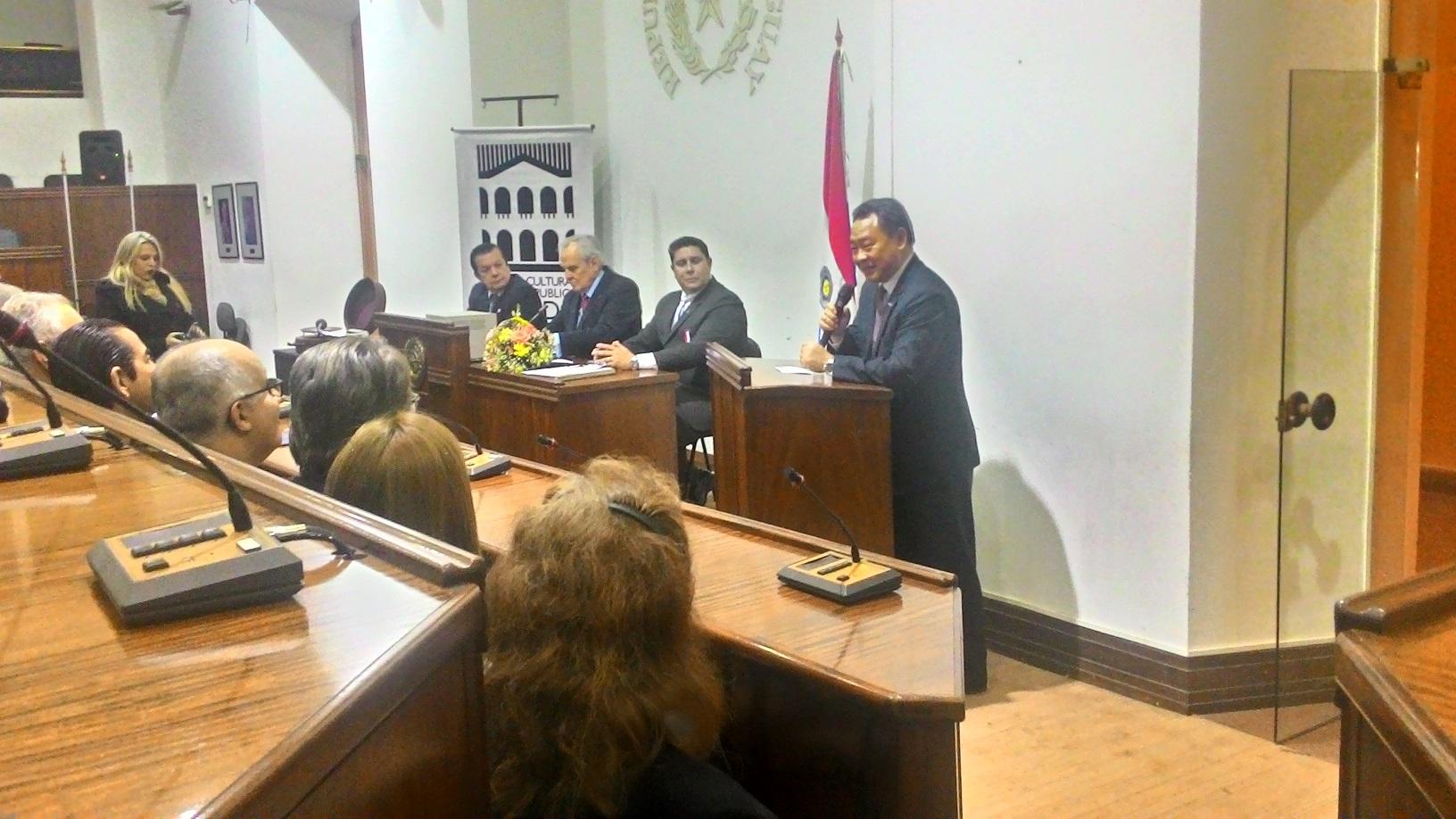本(105)年7月12日適逢我國與巴拉圭建交59週年,巴拉圭軍事及地理歷史學會」於當日晚間在巴國家文化中心內之舊國會議場舉辦之紀念活動,駐館俞大使大㵢出應邀出席。