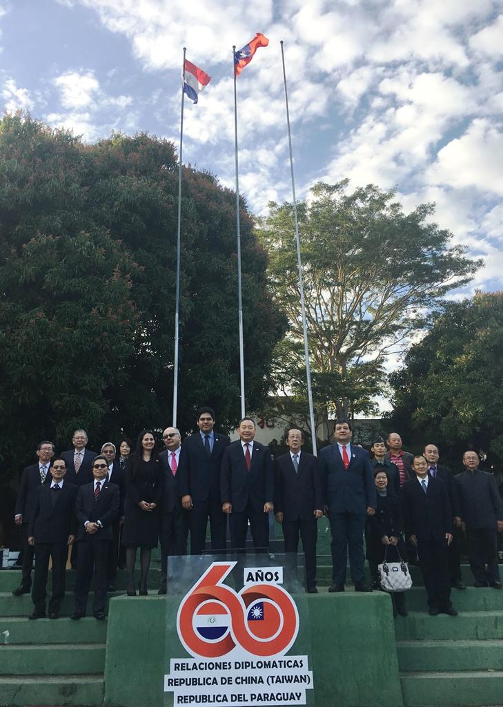 巴拉圭留臺校友會為慶祝中華民國與巴拉圭共和國建交60週年,特於106年7月5日上午假巴拉圭中正學校舉辦升旗典禮,駐巴拉圭大使俞大㵢偕大使館員眷、亞松森中華會館洪理事長振盛及旅巴各僑團代表、巴拉圭留臺校友會主席阿魯亞(Julio Arrúa)及會員、中正學校校長狄亞士(Gustavo Díaz)及全體師生共約250人到場參加。