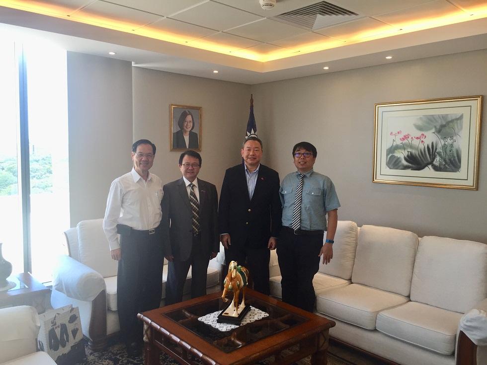 甫於本(106)年8月成立的巴拉圭恩卡納西翁市僑界關懷救助協會,由黃銀河會長與謝昌穆副會長代表於12月13日中午自巴國邊城恩卡納西翁(Encarnacion)來到亞松森,拜會駐巴拉圭俞大使大㵢。會談中,俞大使肯定該協會自成立以來,在黃會長領導下積極配合駐館展開對旅外國人與偏遠僑胞的關懷協助,先後辦理慶祝雙十國慶、中秋節、重陽敬老等活動,並配合駐館賑濟當地風災居民,提升臺灣僑民在當地主流社會形象。 黃會長則特別感謝駐巴拉圭大使館與駐東方市總領事館輔導成立該協會,讓當地有個社團可以做為服務據點凝聚僑民向心。黃會長同時向俞大使簡報恩卡納西翁地區最近的發展及當地僑胞的概況,並請大使館與總領事館繼續關心該市僑民動態。俞大使肯定當地僑民數量雖然不多,但該協會的活動力與服務熱情卻十分充沛,有目共睹。 俞大使夫婦隨後在亞松森LaMision旅館宴請黃會長一行,並邀請亞松森中華會館洪振盛理事長作陪餐敘,相談甚歡。