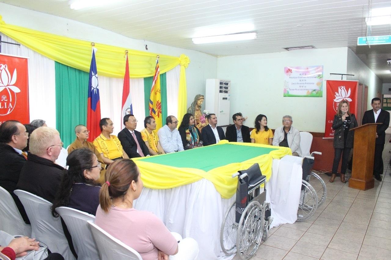 巴拉圭華人慈善基金會分別於6月11日上午於東方市佛光康寧醫院及同日下午明加瓜蘇市聖母堂辦理捐贈鄰近縣市Juan O’leary、Juan Mallorquin、Minga Guazú、Hernandarias、Minga Porá及Concepcion等貧民愛心輪椅儀式,本館魏副總領事世鉅應邀代表觀禮見證。此次受贈巴國地方政府首長及代表均對此義舉深表謝意,並感念該基金會自1990年創會迄今在巴國各地之義行。