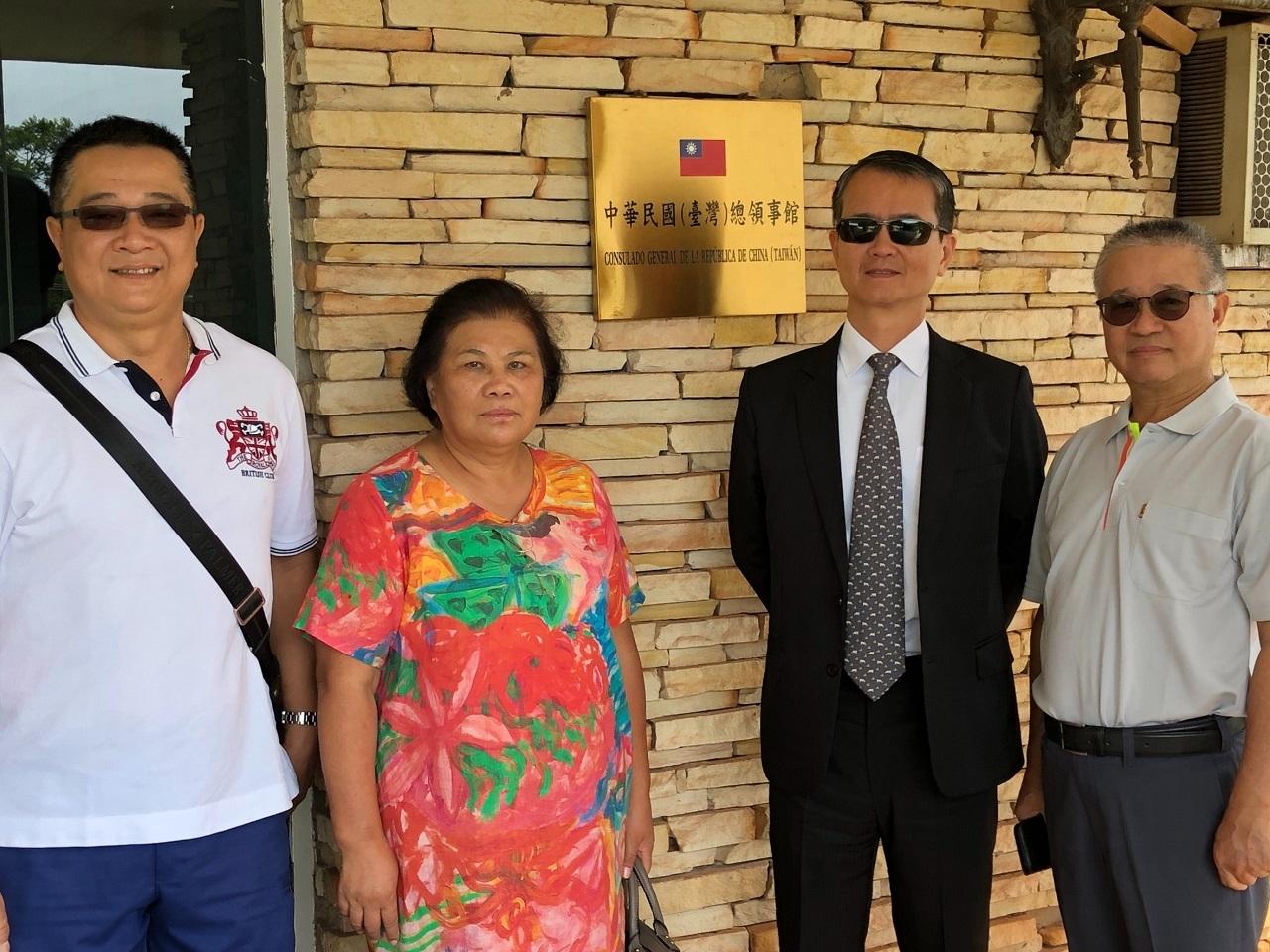 中南美洲臺灣商會聯合總會張總會長德輝及秘魯臺灣商會陳林會長牡丹、張秘書長玉屏及陳理事世堂共4人,於11月27日上午拜會駐東方市總領事館,由陳總領事昆甫親自接待,雙方就中南美洲各國臺商會運作與發展,及臺商會員面對世界變局之創新轉型之道交換意見。