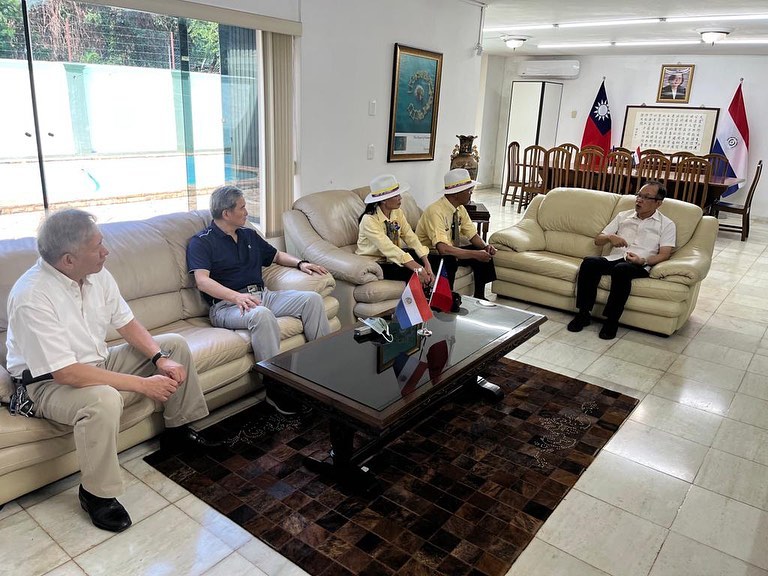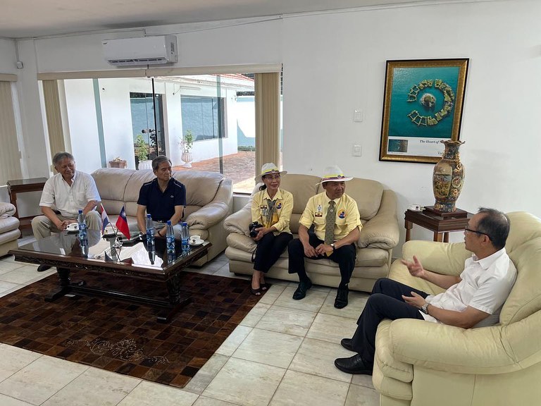 中南美洲臺灣商會聯合總會楊育林名譽總會長伉儷在郭僑務諮詢委員鳳文及邢僑務諮詢委員增傑陪同下,拜會張總領事。