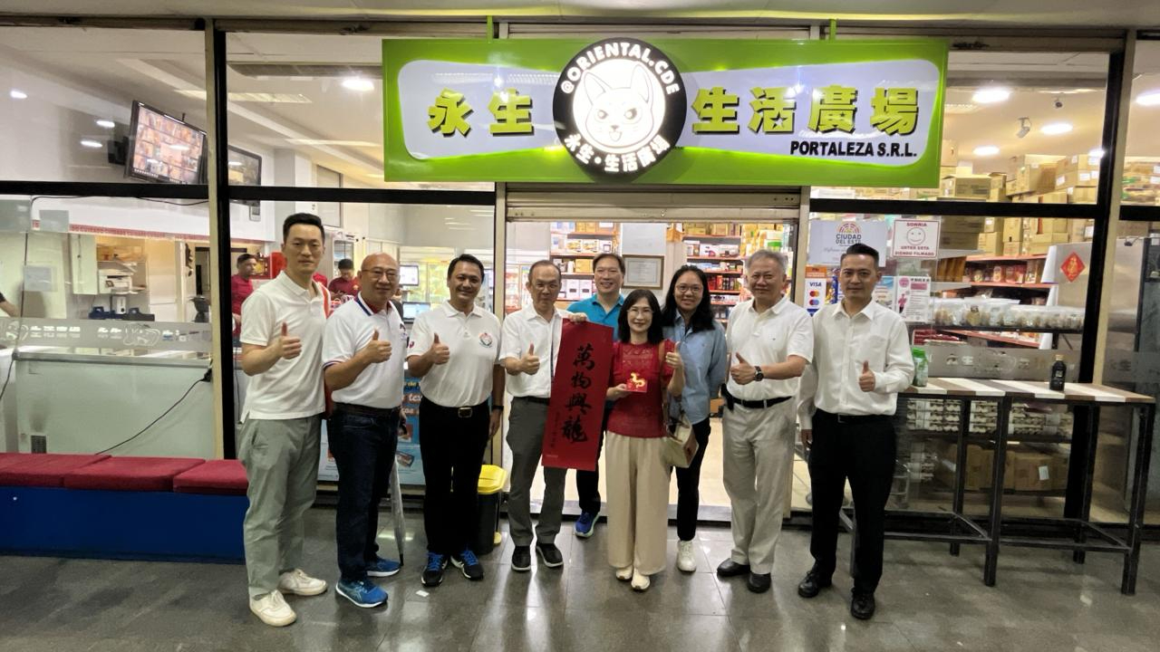 本館總領事張俊彬、夫人劉俊君偕領事洪培舜、僑務秘書陳奕綸,在巴拉圭台灣商會會長陳正華的安排規畫下,大年初六與僑務諮詢委員郭鳳文、邢增傑以及東方市中華會館理事長顧海疆等僑領共同赴市中心Microcentro 拜訪台商店家。
