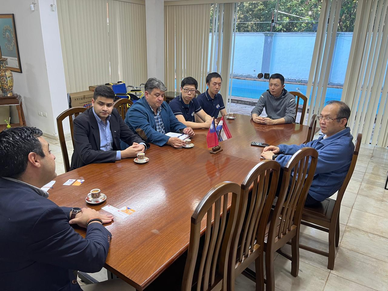 巴拉圭臺灣商會青商會蔡鎮光會長偕簡仲廷副會長、許浩霆副會長及東方市青商會(JCI CDE)會長Cesar Yamil Oviedo、東方市扶輪社社長Marcelino Alarcon Hermosa前來拜會駐東方市張俊彬總領事,就如何促進 巴拉圭與 臺灣商業經貿交流、臺巴關係緊密及巴拉圭青年申請臺灣獎學金 等議題進行意見分享。