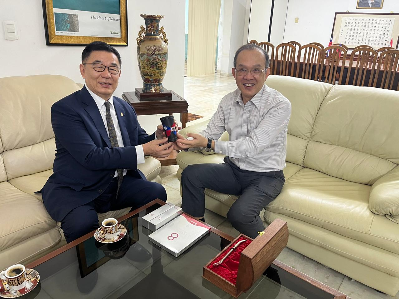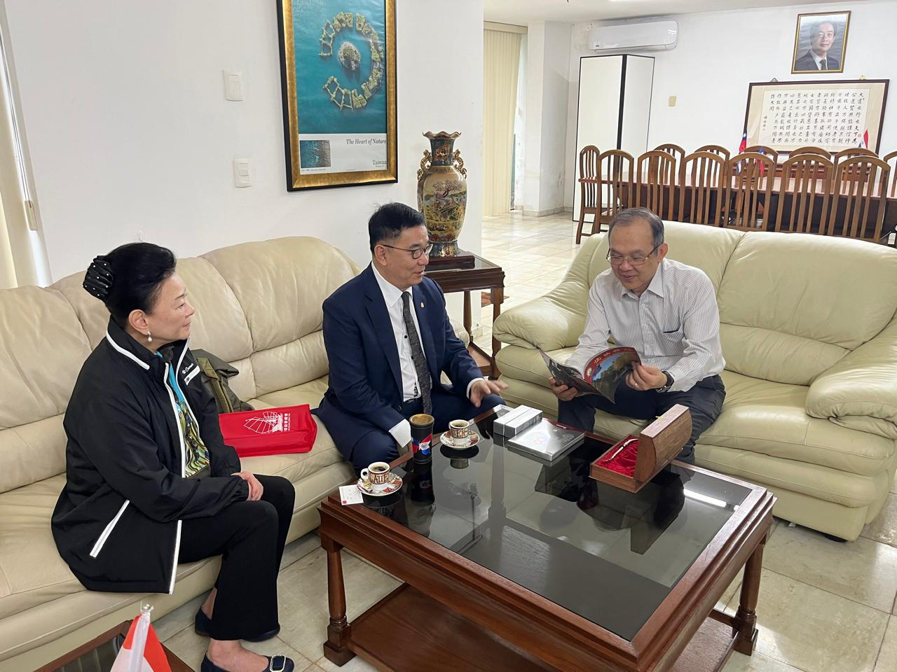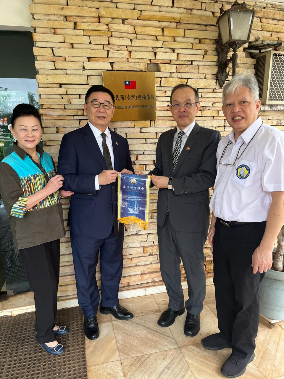 華僑協會總會林齊國理事長夫婦在華僑協會總會巴拉圭分會司徒梓明監事長及楊樸秘書長的陪同下,前來拜會本館張總領事,雙方就區域僑情、經貿商情等議題充分交流。