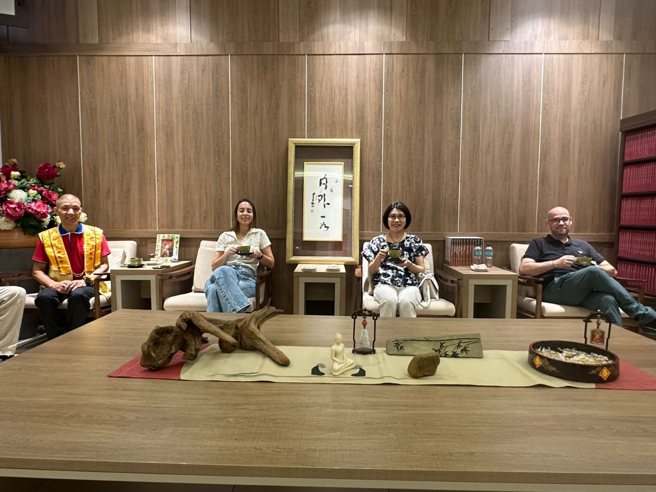 陳慧芬總領事於3月7日上午陪同巴拉圭第一夫人辦公室部長級總協調人Antonella Albertini參訪巴拉圭佛光山;A部長對於佛光山此一重要的精神和文化場域有了更深入的瞭解,特別是其傳統的建築風格與寧靜祥和的氛圍,令人心生反思與冥想之感。