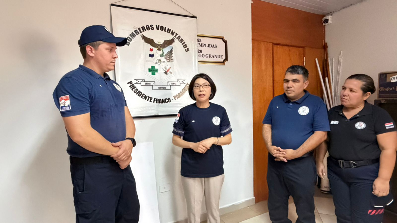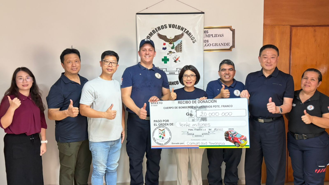 3月11日,陳總領事出席僑界捐贈 Presidente Franco 市消防隊總部善款活動,表達對當地消防人員長期守護社區安全的支持與敬意,並感謝僑界對於臺巴交流的貢獻,展現Taiwan can help的精神。
