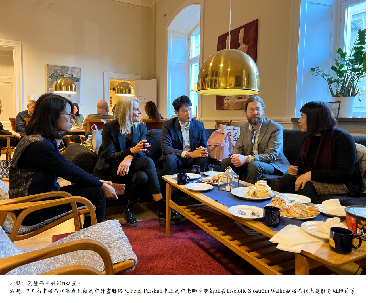 臺北市立中正高中江惠真校長率領該校SDGs重點交流領域教師赴瑞典耶夫勒(Gavle)市拜會阿特拉斯計畫(Atlas Project)領航學校瓦薩(Vasa )高中參訪,駐瑞典代表處派員隨行協助照料。