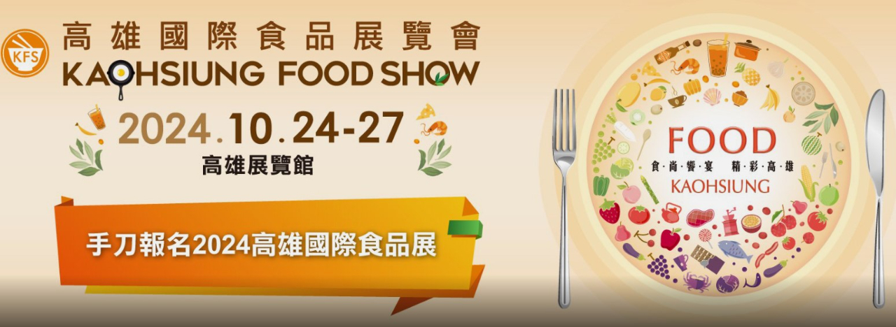 2024年高雄國際食品展覽會,訂於2024年10月24至27日於高雄展覽館舉行,預計徵集240家參展廠商,展覽資訊請參www.foodkh.com.tw。