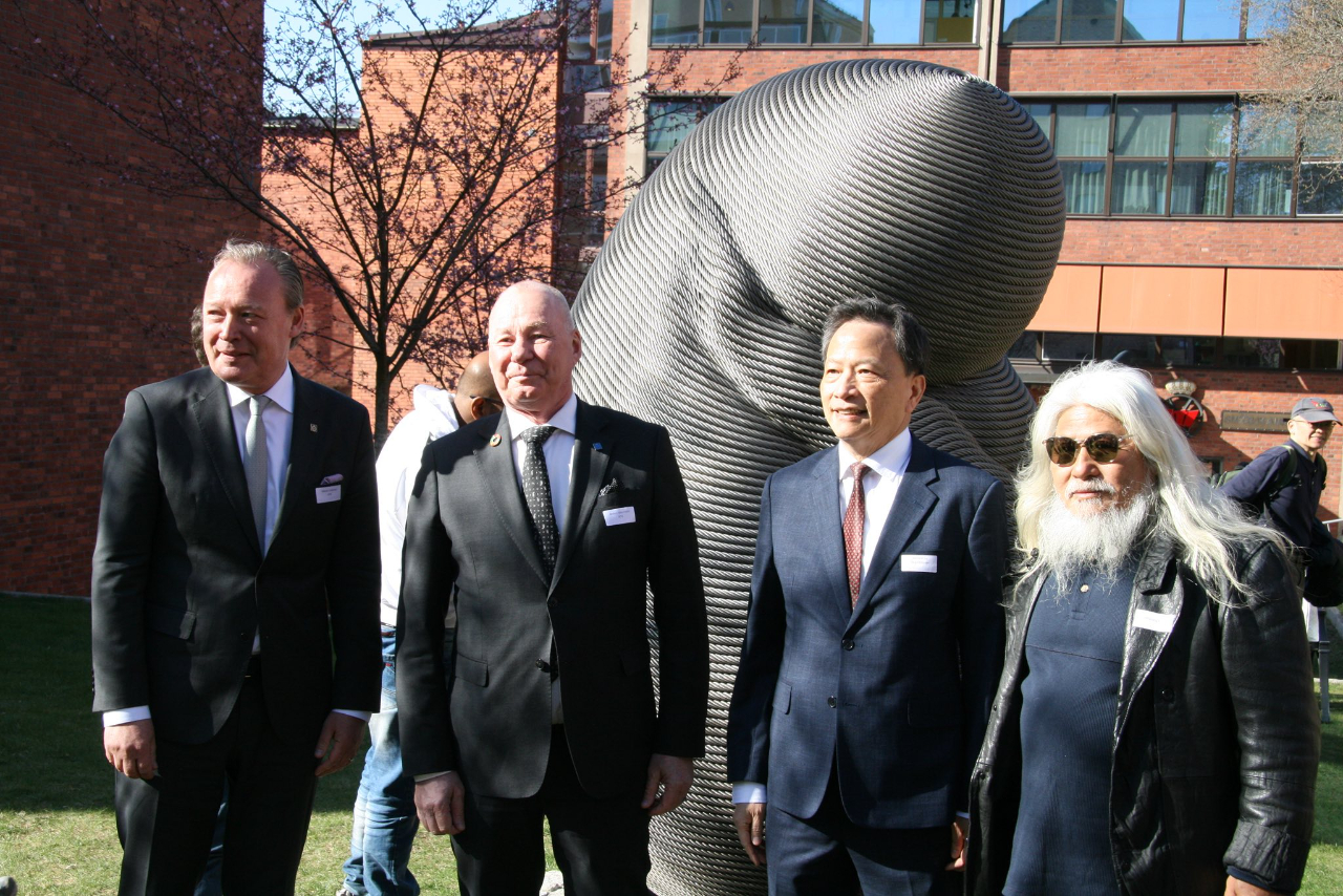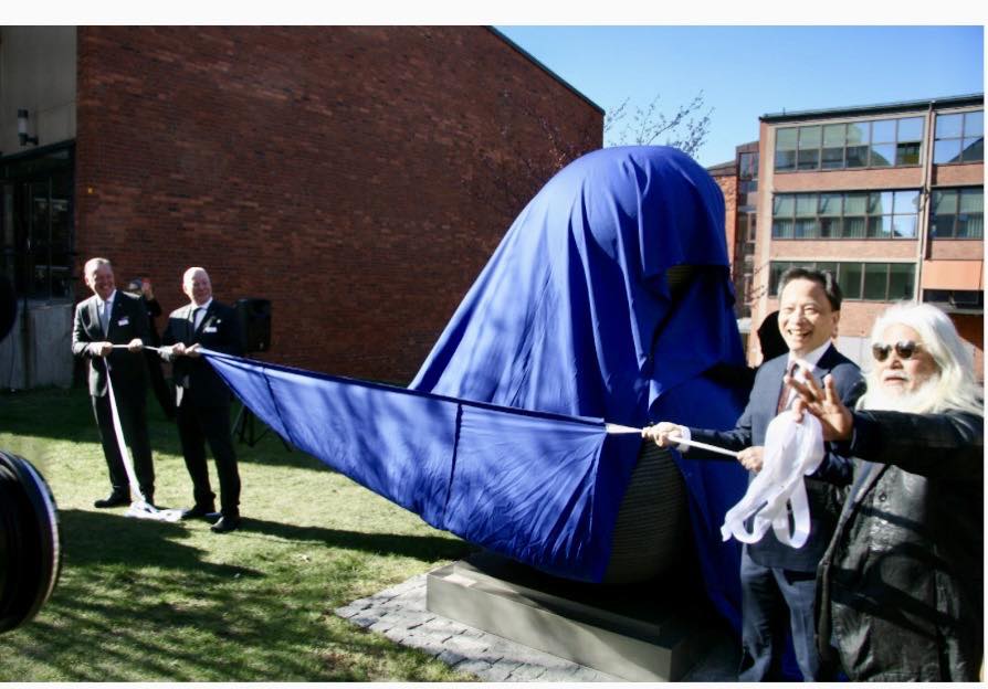 我國知名雕塑藝術大師康木祥本(4)月15日應瑞典皇家理工學院(KTH)邀請,出席校方為其捐贈作品-重生系列之《無限智》(Unlimited Wisdom)所舉行之揭幕儀式。