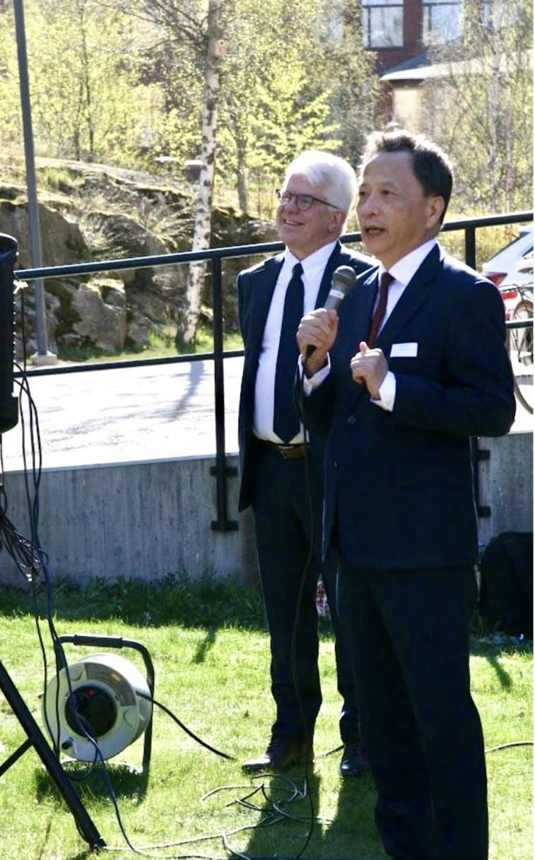 本處谷瑞生大使致詞代表我政府感謝KTH多年來與我的堅實合作,也感謝康木祥大師慷慨捐贈《無限智》予世界名校-KTH。另說明我與該校合作密切,KTH 可稱之為「Kiss Taiwan Happy」。谷大使稱許康大師一條鋼索連結世界的「世界一家」精神,期待一條鋼索不僅連結臺灣與瑞典,亦連結台灣與全世界。