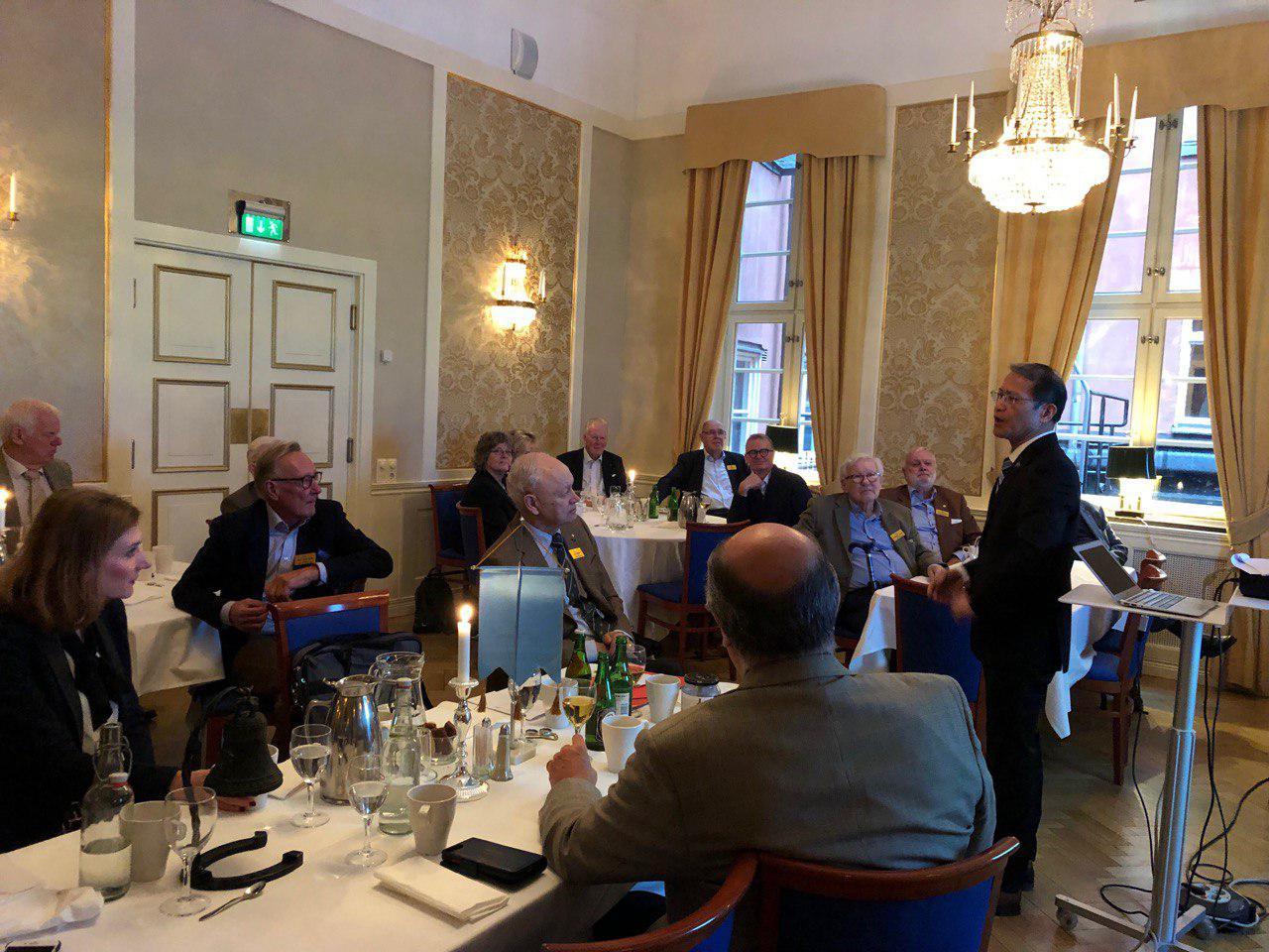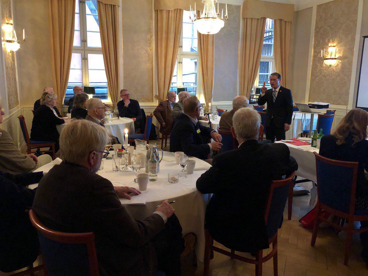 本處廖大使東周於本(108)年11月21日應邀赴瑞典Stockholm-Vasaborgen扶輪社以「臺灣現勢」為題發表演說,列舉多項國際評比說明我國經貿發展成就,深入淺出介紹我國重要地緣戰略位置及與中國關係,進而闡述臺瑞典日益緊密合作關係及兩國共享價值「自由民主」及「婚姻平權」。廖大使更指出,由於中國的打壓,臺灣未能受邀參與第72屆「世界衛生大會」(WHA)及「國際民航組織」(ICAO)第40屆大會,但臺灣是全世界衛生和防疫體系不可或缺的一環,臺灣亦有能力,也有意願為保障區域及全球航空安全做出貢獻。