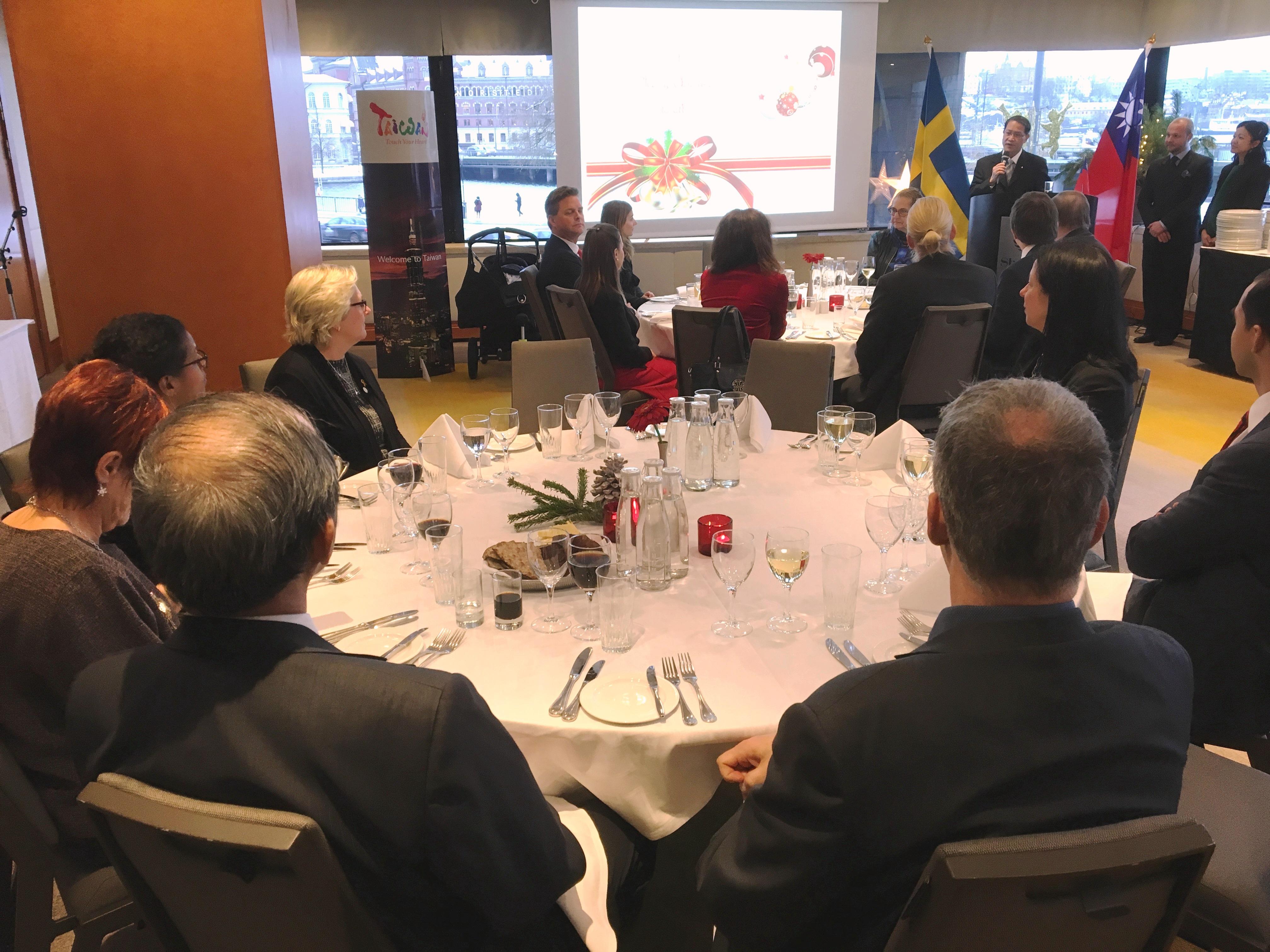 Taipei Mission in Sweden held an end of the year lunch on the 13th of December at Sheraton Hotel to thank the "Swedish Taiwanese Parliamentary Association" for a long time of promoting the development of relations between Taiwan and Sweden. Caroline Szyber, chairman of the "Swedish Taiwanese Parliamentary Association" and 14 members of the association attended the lunch.