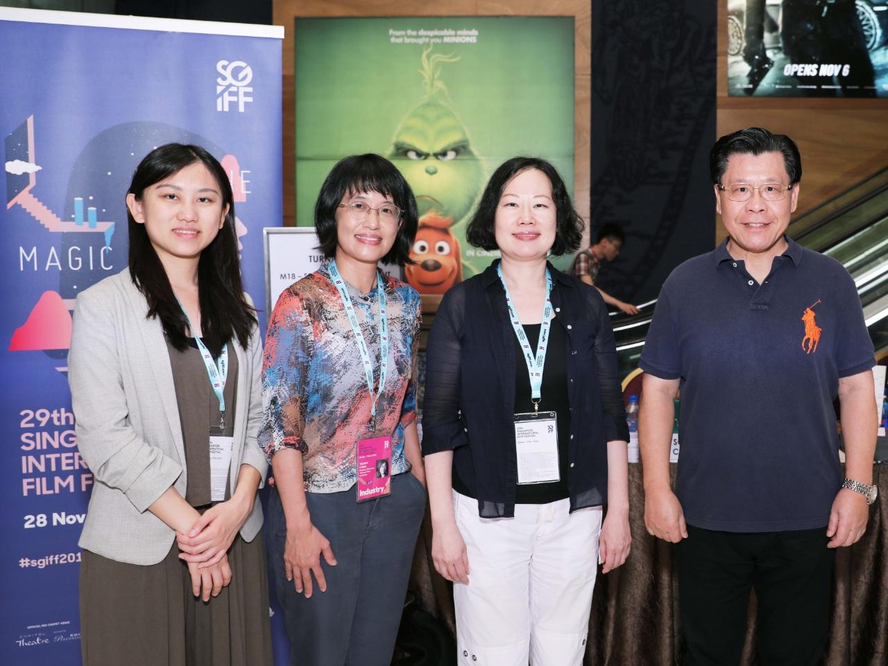 賀照緹導演(右二)紀錄片「未來無恙」於12月1日在新加坡首映,駐新加坡台北代表處梁國新代表(右)到場支持。