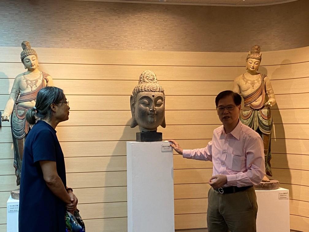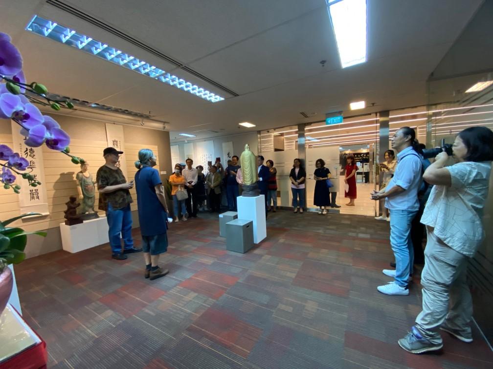 駐新加坡台北代表處舉辦『書情塑意-陳連山 盧瑞美 書法與雕塑聯展』,21日下午開幕,吸引許多新加坡藝文界人士前來觀賞。