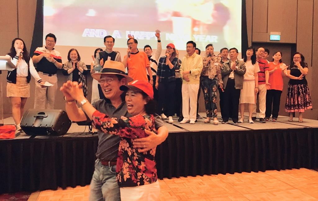 The Taipei Business Association in Singapore kickstarted its 2019 year-end banquet with a warm-up exercise routine.