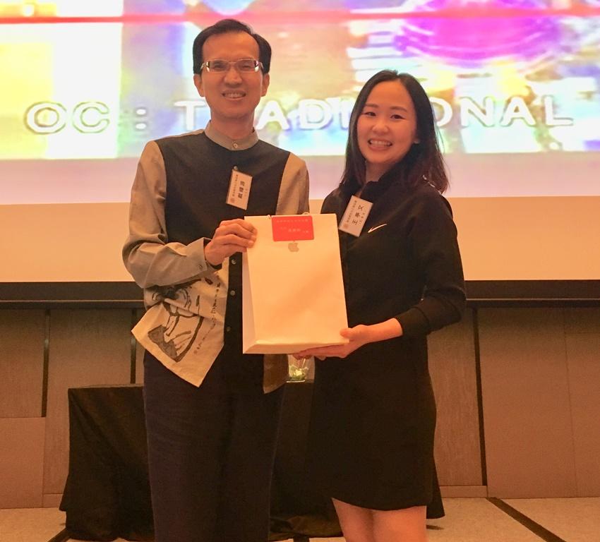 Deputy Representative Steven Tai (left) with Ms. Phoebe Wang, one of the winners of the lucky draw at the year-end dinner.