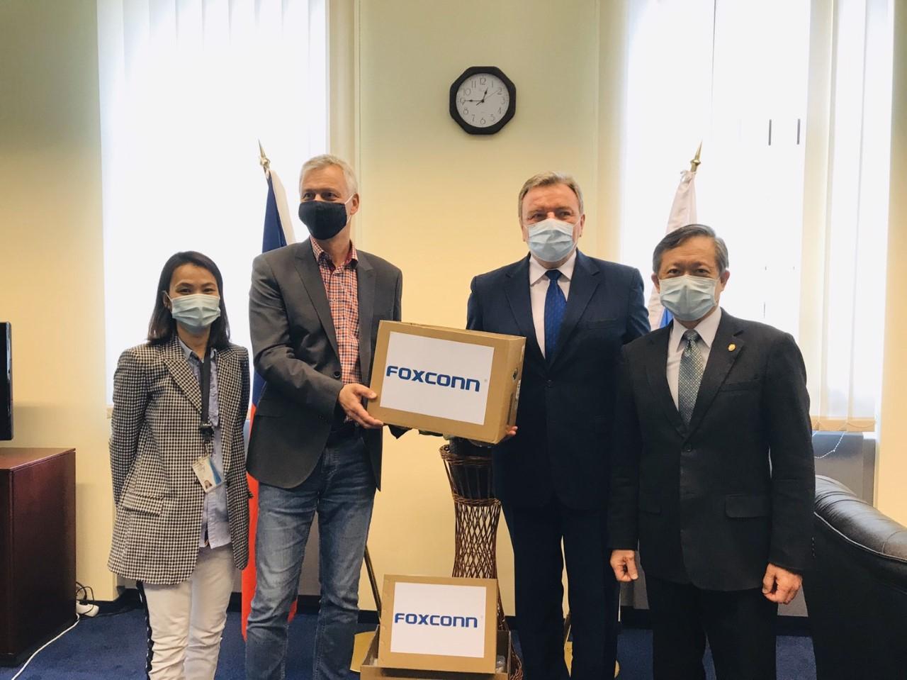(4月29日 L.M.市市長Jan Blchac代表接受臺商鴻海富士康公司捐贈3000枚口罩)