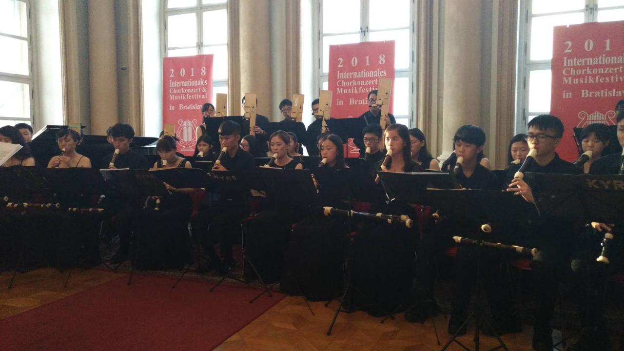 The National Taiwan University EMBA Chamber Choir, the Yunlin Philharmonic Chamber Choir and the Kaohsiung Youth Wooden Flute Team performed at the 2018 Slovak International Music Festival on July 24, 2018