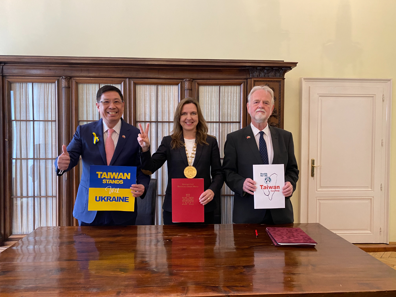 Representative Lee and the Mayor of the Bratislava Old Town, Zuzana Aufrichtová signed a donation contract for 250,000 USD Taiwan  provides for relocation and integration of Ukrainian  refugees.