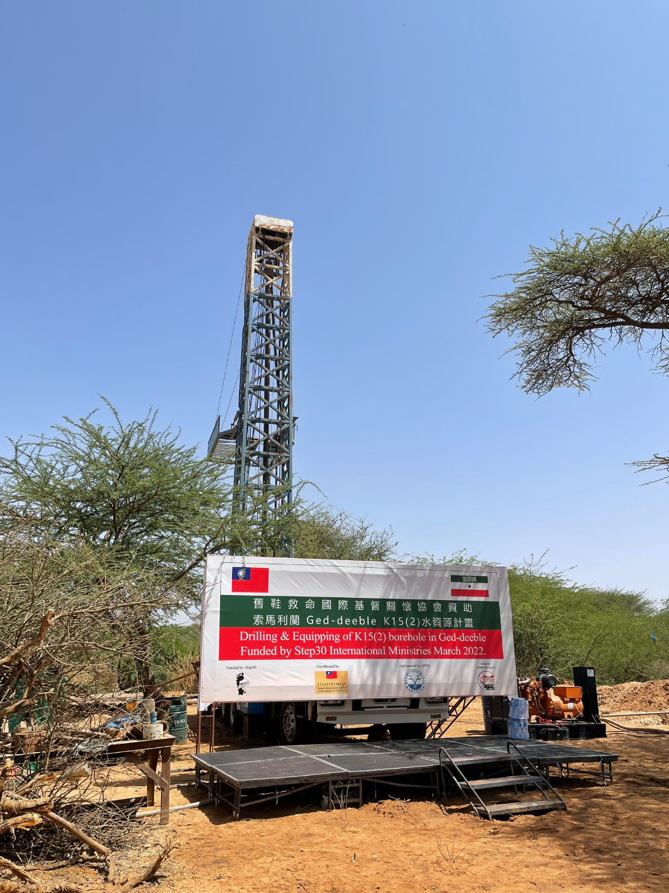 台灣駐索馬利蘭代表處羅代表震華與索馬利蘭首都哈格爾薩(Hargeisa)水利局長Mohamed Ali Daaroody在本(111)年3月31日(星期四)共同主持「舊鞋救命國際基督關懷協會」所資助索馬利蘭水井挖鑿計畫完工典禮。