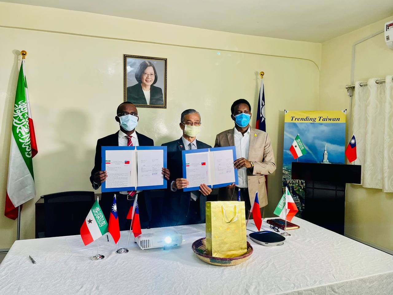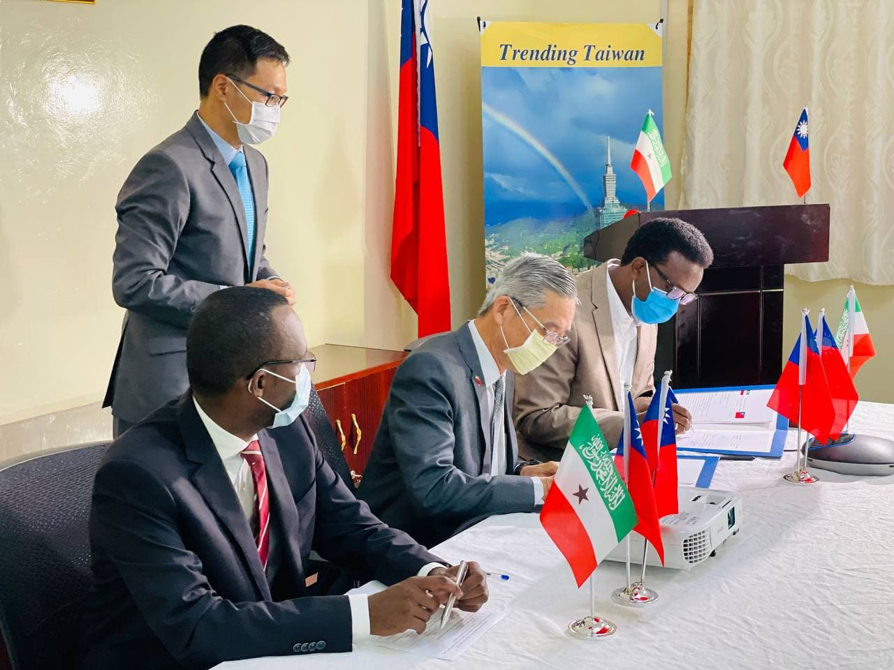Taiwan Representative Office in the Republic of Somaliland cooperates with Taiwanese NGO step30 to fund the water project Hargeisa Water Agency. Yu-Jen, Yang, Chairman of Step30, and Mohamed Ali Daarood, General Director of Hargeisa Water Agency, signed the MOU to drill borehole and supply pipes and other accessories and witnessed by Ambassador Allen C. LOU of the Taiwan Representative Office in Somaliland and Honourable Omer Ali Abdillahi of Minister of Planning and Development of on 28th November 2021.
