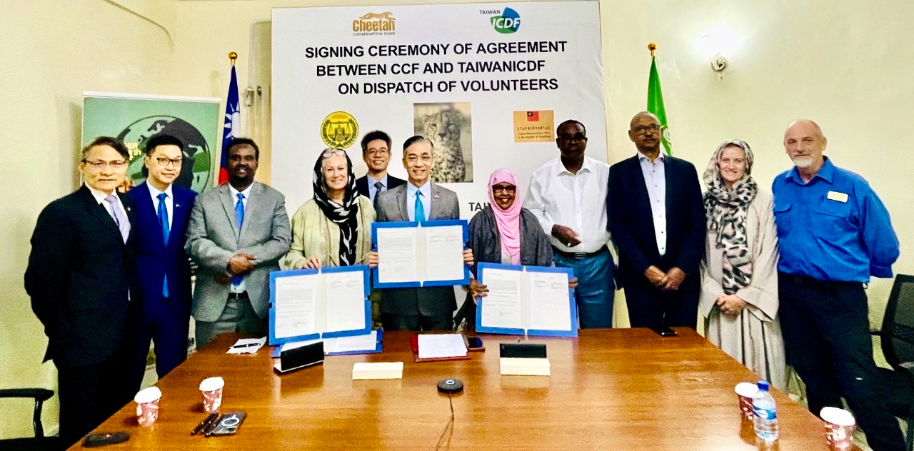 Marking the annual International Cheetah Day, Taiwan International Cooperation and Development Fund (ICDF) signed the Agreement on the Dispatch of Volunteers with the Cheetah Conservation Fund in Somaliland on 4 December 2022. The signing ceremony was held at the Taiwan Representative office in Somaliland, and the Ambassador Allen LOU of the office along with Minister of Environment and Climate Change Shukri H. Ismail Mohamoud (Bandare) and other ministers witnessed the signing of the said Agreement.