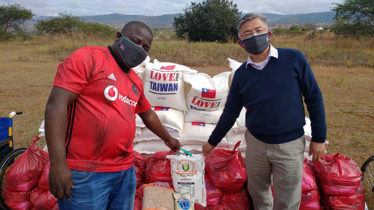 梁洪昇大使、韓健豪公使及技術團吳茹嵐經理應史國國會議員Gcina Shebeleza Dlamini邀請,赴Mayiwane Inkhundla地區贈送來自臺灣的白米及物資。