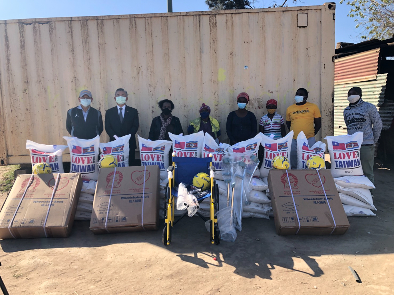 Ambassador Liang and Minister-counselor Oliver Harn were invited to visit MP Thandi Nxumalo's constituency at Manzi South and present LovefromTaiwanRice, wheelchairs and walkers in order to assist locals who are facing food shortage ever since the outbreak of Covid-19 pandemic and especially the unrest happened a few weeks ago.