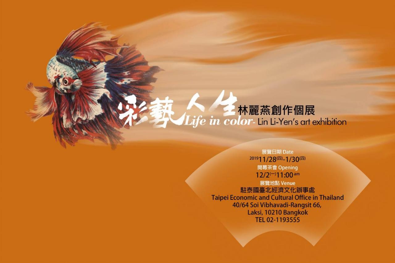 為強化落實台灣新南向政策,促進台泰兩國的文化交流,駐泰國代表處將於2019年11月28日至2020年1月30日在該處一樓大廳舉辦「彩藝人生 林麗燕創作個展」,展出旅泰藝術家林麗燕女士20餘幅彩墨作品。