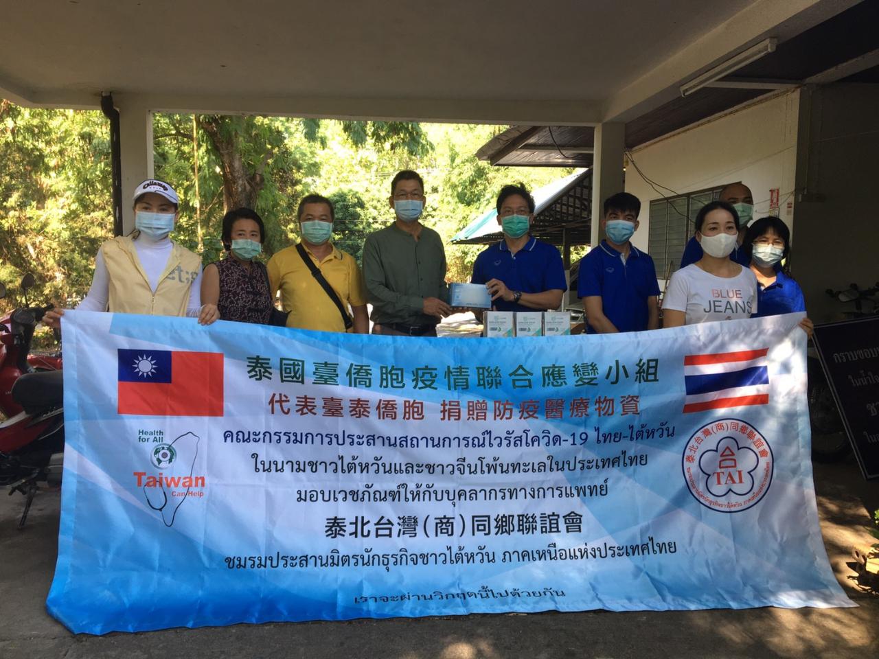 「泰國台僑胞疫情聯合應變小組」(簡稱「聯合應變小組」)本(2020)年5月13日上午由泰北臺商同郷聯誼會張文杰會長代表前往清邁市郊湄翁醫院捐贈口罩、手套、消毒液等防疫物資,並由該醫院醫護人員代表接受。