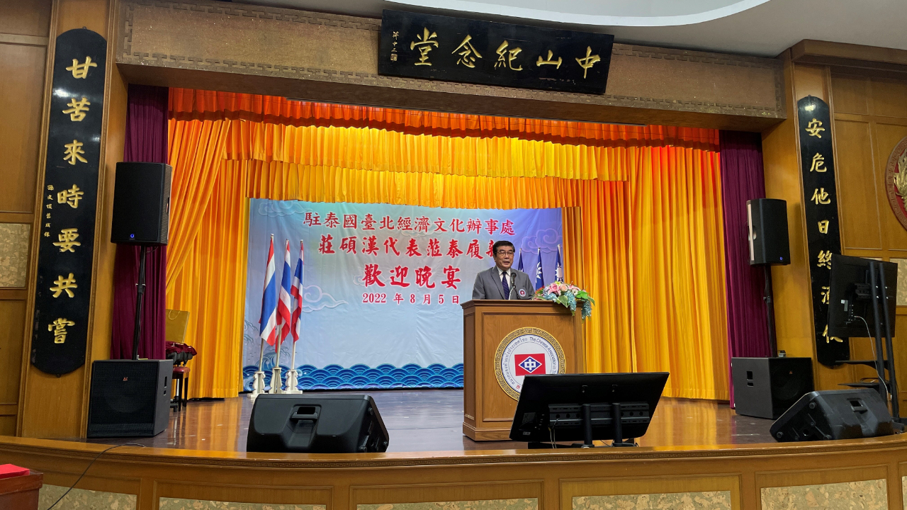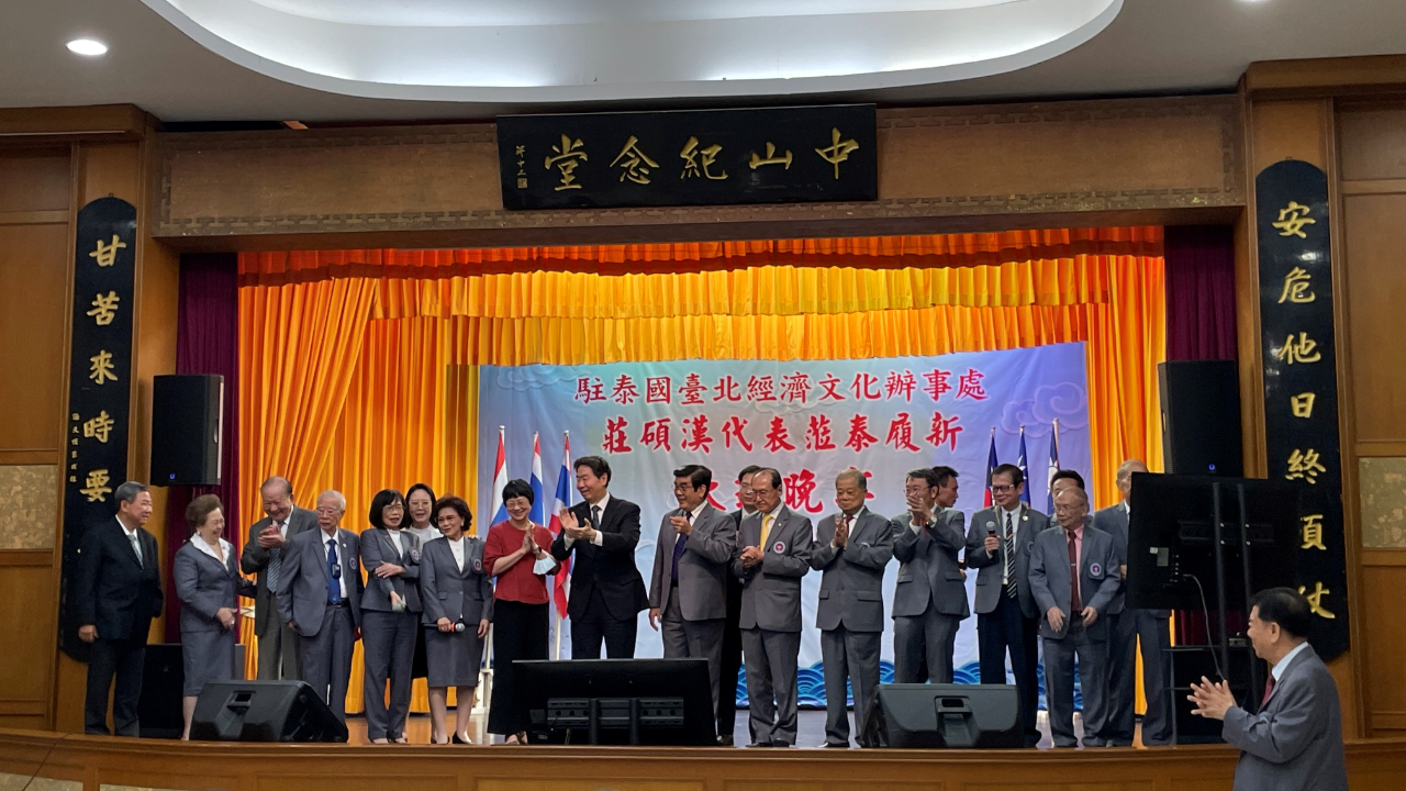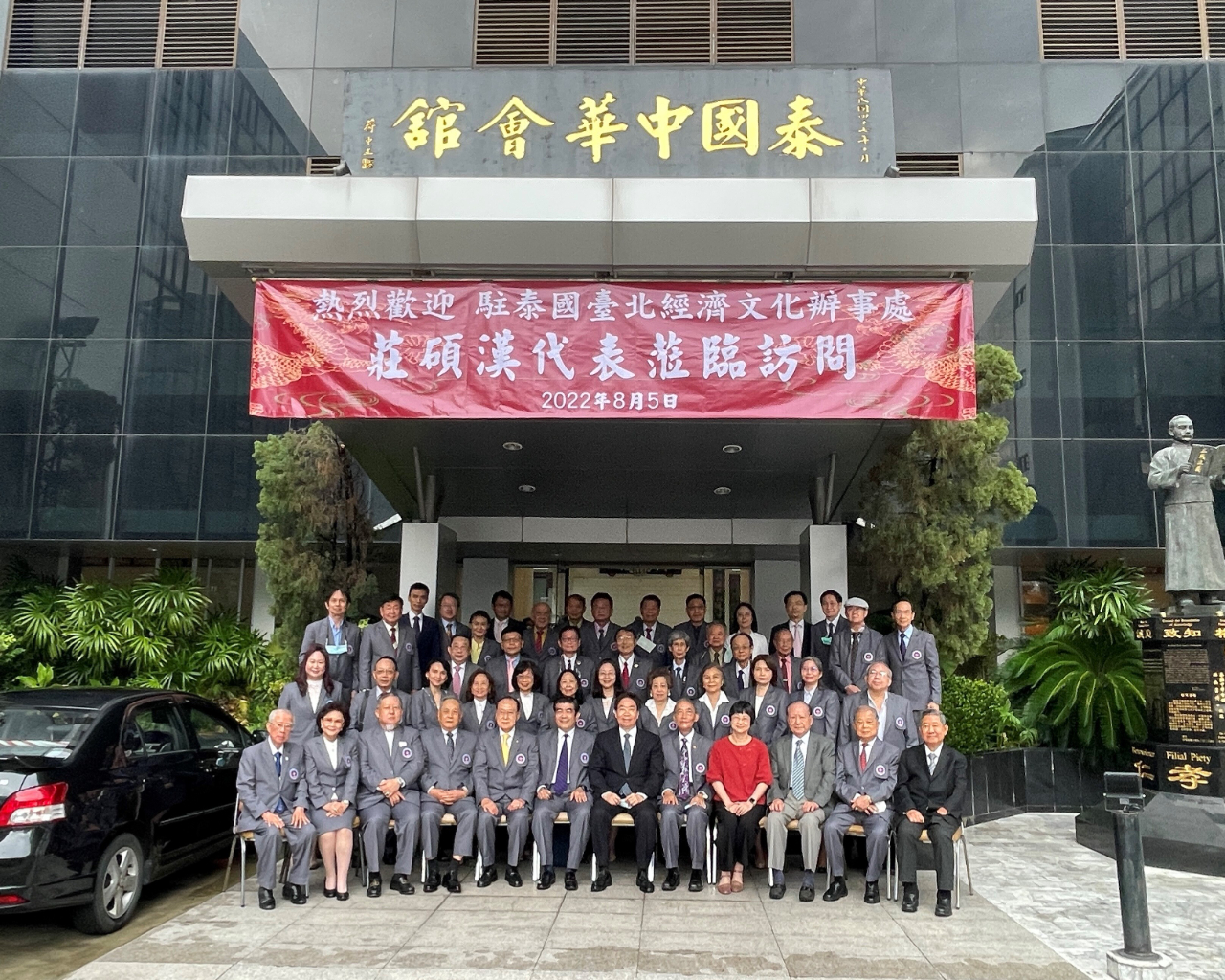 駐泰國代表處莊碩漢大使日前抵泰履新,8月5日即拜會泰國中華會館,泰國中華會館李那隆理事長、丘菁瑛名譽理事長、饒培中顧問(中華語文中心校長)、余聲清顧問(泰國華僑協會主席)、郭修敏副理事長(泰國臺灣商會聯合總會總會長)等會館幹部歡迎接待,並進行交流座談,嗣向國父銅像獻花致敬並獻唱國父紀念歌,後參觀會館環境設施;晚間莊碩漢大使出席會館歡迎晚宴,現場約近百人參與,駐泰代表處薛秀媚公使偕同仁陪同出席。