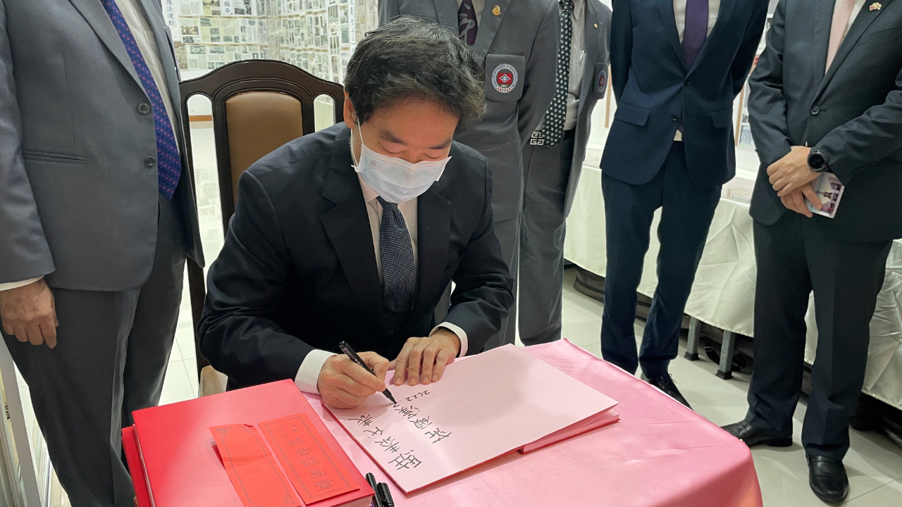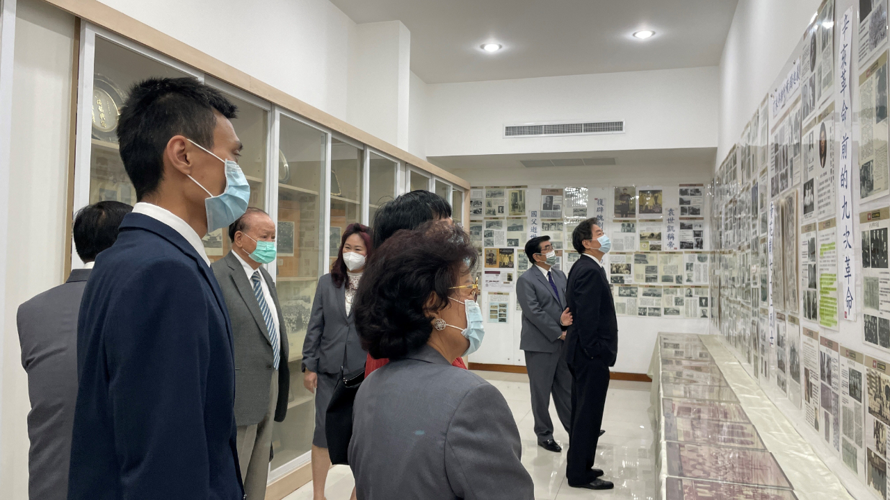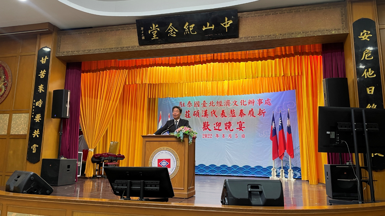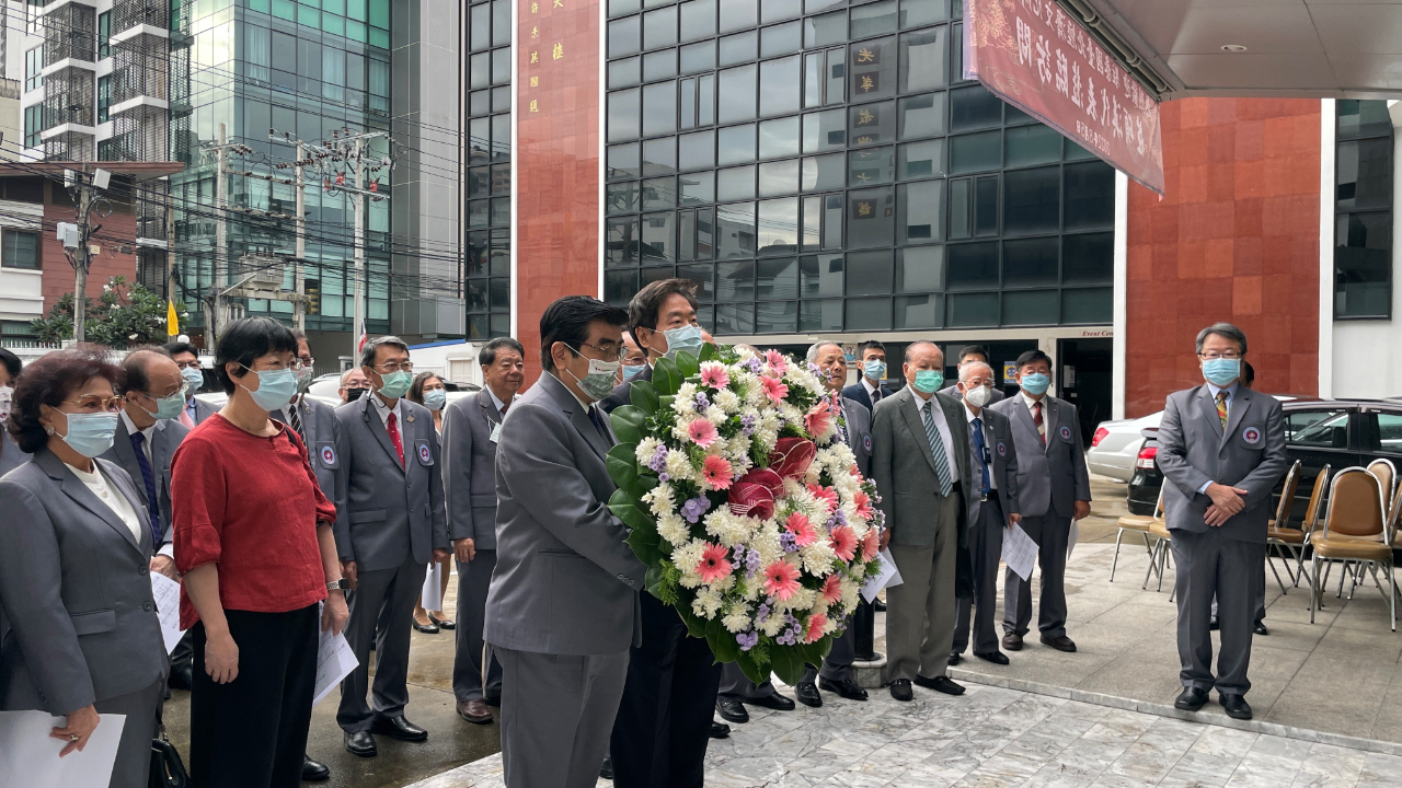 駐泰國代表處莊碩漢大使日前抵泰履新,8月5日即拜會泰國中華會館,泰國中華會館李那隆理事長、丘菁瑛名譽理事長、饒培中顧問(中華語文中心校長)、余聲清顧問(泰國華僑協會主席)、郭修敏副理事長(泰國臺灣商會聯合總會總會長)等會館幹部歡迎接待,並進行交流座談,嗣向國父銅像獻花致敬並獻唱國父紀念歌,後參觀會館環境設施;晚間莊碩漢大使出席會館歡迎晚宴,現場約近百人參與,駐泰代表處薛秀媚公使偕同仁陪同出席。