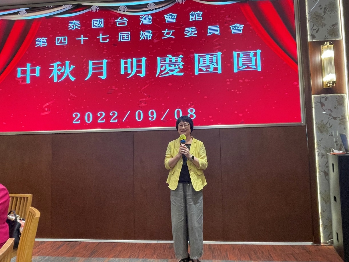 泰國台灣會館婦女委員會於9月8日舉辦中秋慶團圓活動,駐泰國代表處薛秀媚公使偕代表處同仁應邀出席,與大家共聚一堂,慶祝中秋佳節。
