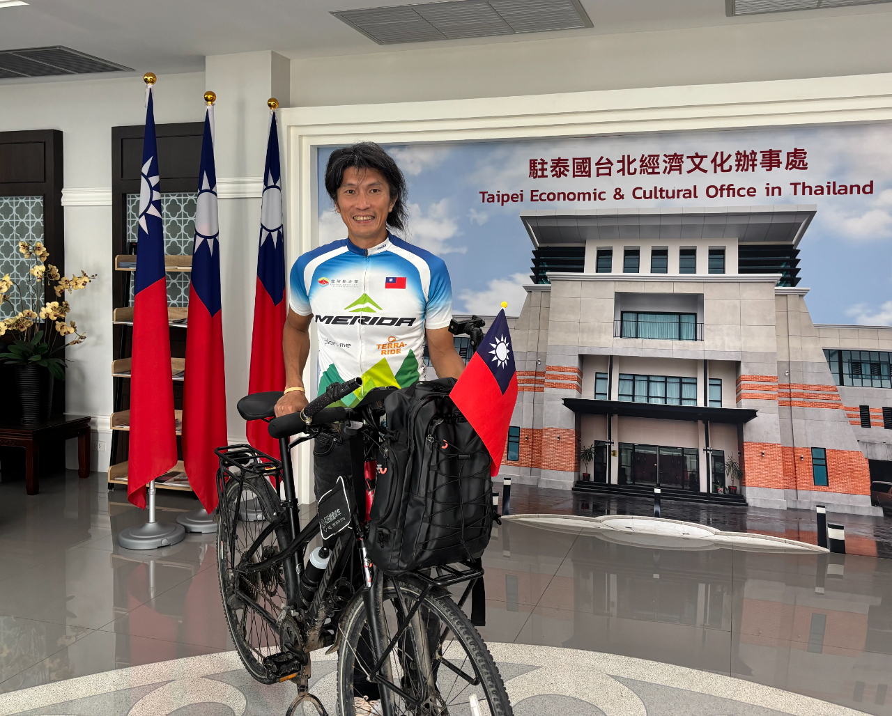 來自台灣的單車環球騎士陳峻永(Jacky Chen)於4月3日拜會駐泰國代表處張俊福大使,暢聊他「Go or Die單車環球計畫」的初衷與心路歷程。