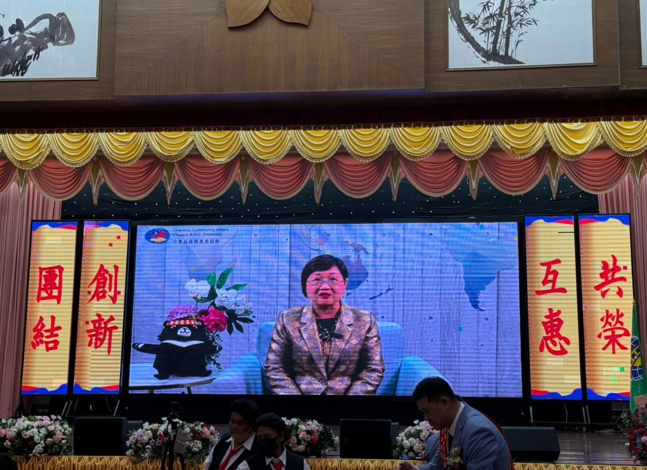 會中播放僑務委員會徐佳青委員長的祝賀影片。張大使現場親頒當選獎牌予陳漢川總會長、章維斌監事長及新任青商會會長黃啟碩。僑務組許世榕組長亦代表委員長頒發賀狀及聘書,張大使並代為頒贈陳總會長「僑務委員任命令」及楊源輝、王興義兩位「僑務顧問聘書」,展現我國政府對僑社領袖的高度重視與支持。