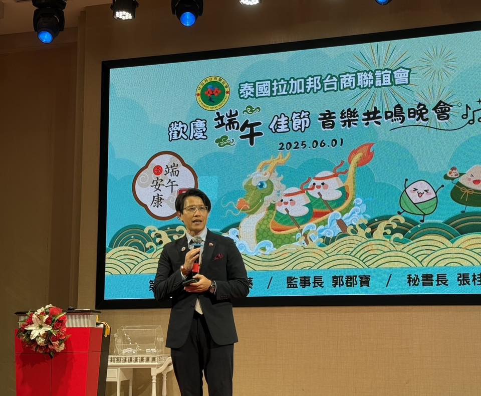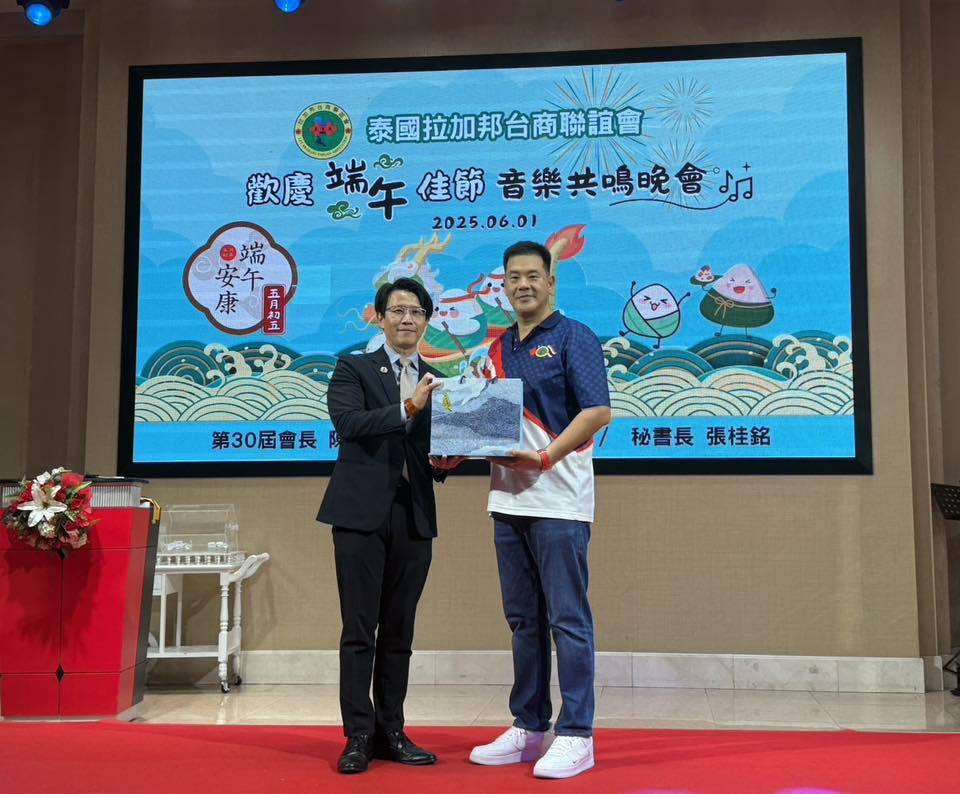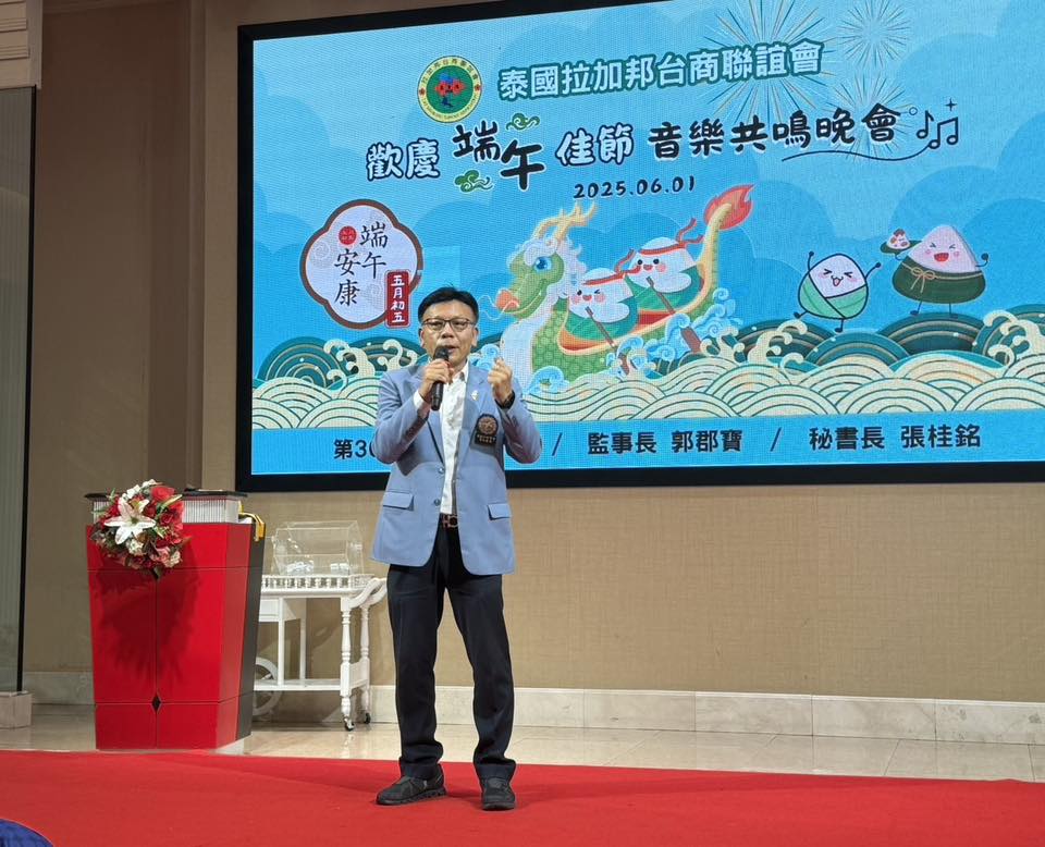 泰國台商總會陳漢川總會長亦特別上台致詞,向與會鄉親祝賀端午佳節,並讚揚拉加邦台商會多年來在團結僑胞、促進交流方面的貢獻,期許未來攜手開創更多可能。
