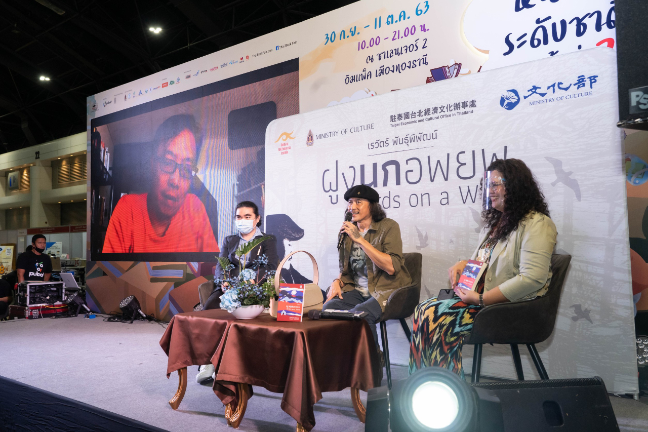 Rewat Panpipat, the winner of the 2020 Silpathorn Awards, wrote the book “Birds on a Wire” during his one-year artist residency in Taiwan. On Oct 2nd, TECO in Thailand (Taipei Economic and Cultural Office in Thailand) invited Rewat Panpipat to the Thailand's National Book Fair 2020 for a Birds on a Wire book launch event featuring cultural exchange. Present at the event were Literary Critic, Dr. Ora-Ong Chakorn and CEO of Radio Taiwan International, Mr. Chang Cheng, who both joined Panpipat in a vigorous talk session.
