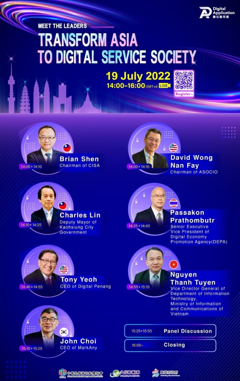The Transform Asia to Digital Service Society Forum is one of the main conference sessions for the 2022 Taiwan Digital Application Week which will be held from 19 – 22 July 2022. This forum will discuss on topics pertaining to digital nation, smart cities and innovative economic development.