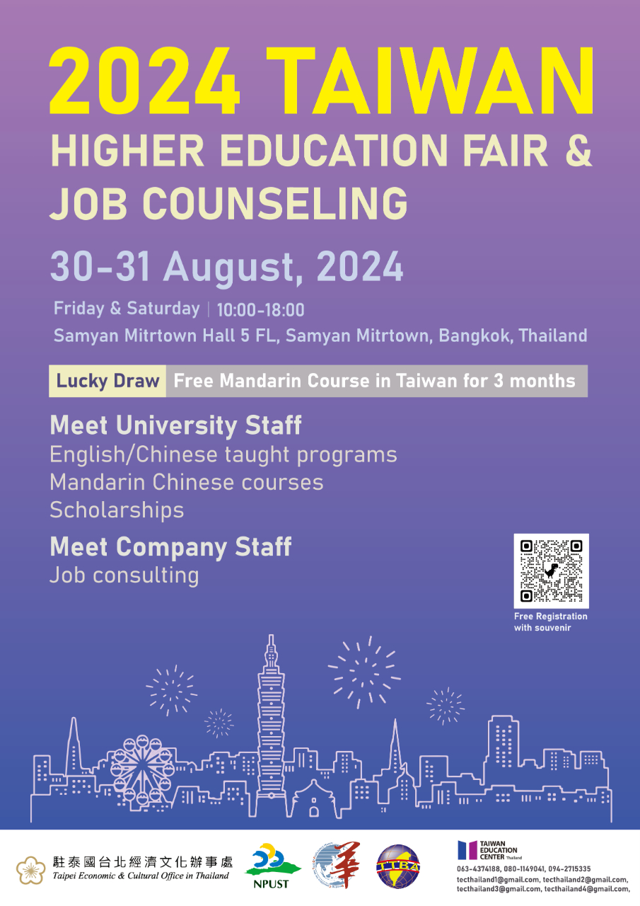 Organized by: Taiwan Education Center (Bangkok Office) Contact Numbers: 063-437-4188, 080-114-9041, 094-271-5335